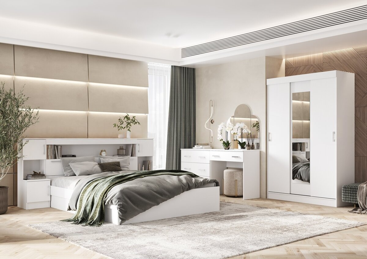 Кровать Скайс ящиками белый текстурный, 140х200 см
