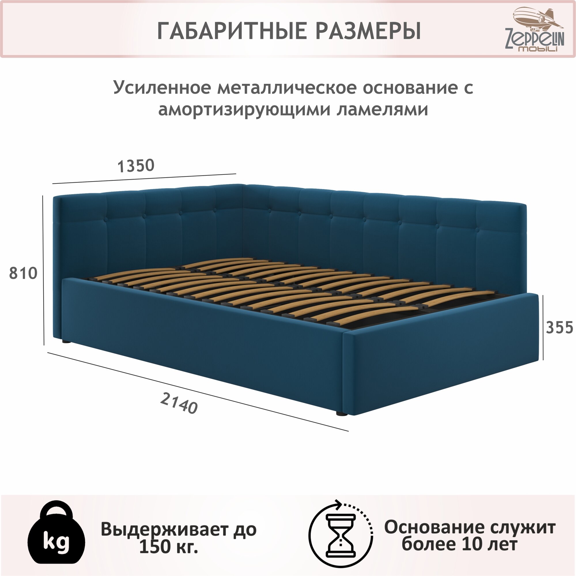 Кровать-тахта угловая Bonna 120х200 синяя ортопедическая, мягкая спинка из велюра, с ламелями информация: