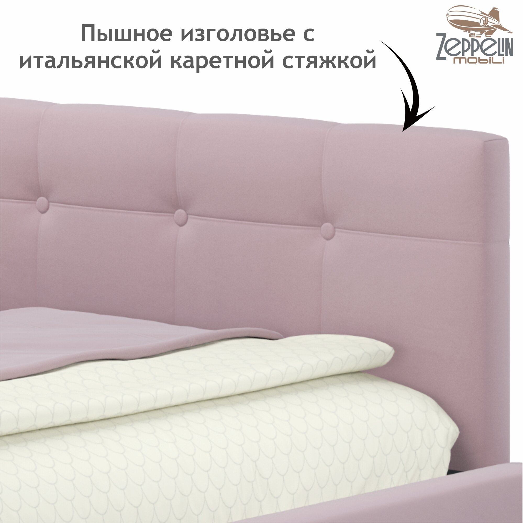 Кровать-тахта угловая Bonna 120х200 лиловая ортопедическая, мягкая спинка из велюра, с ламелями информация: