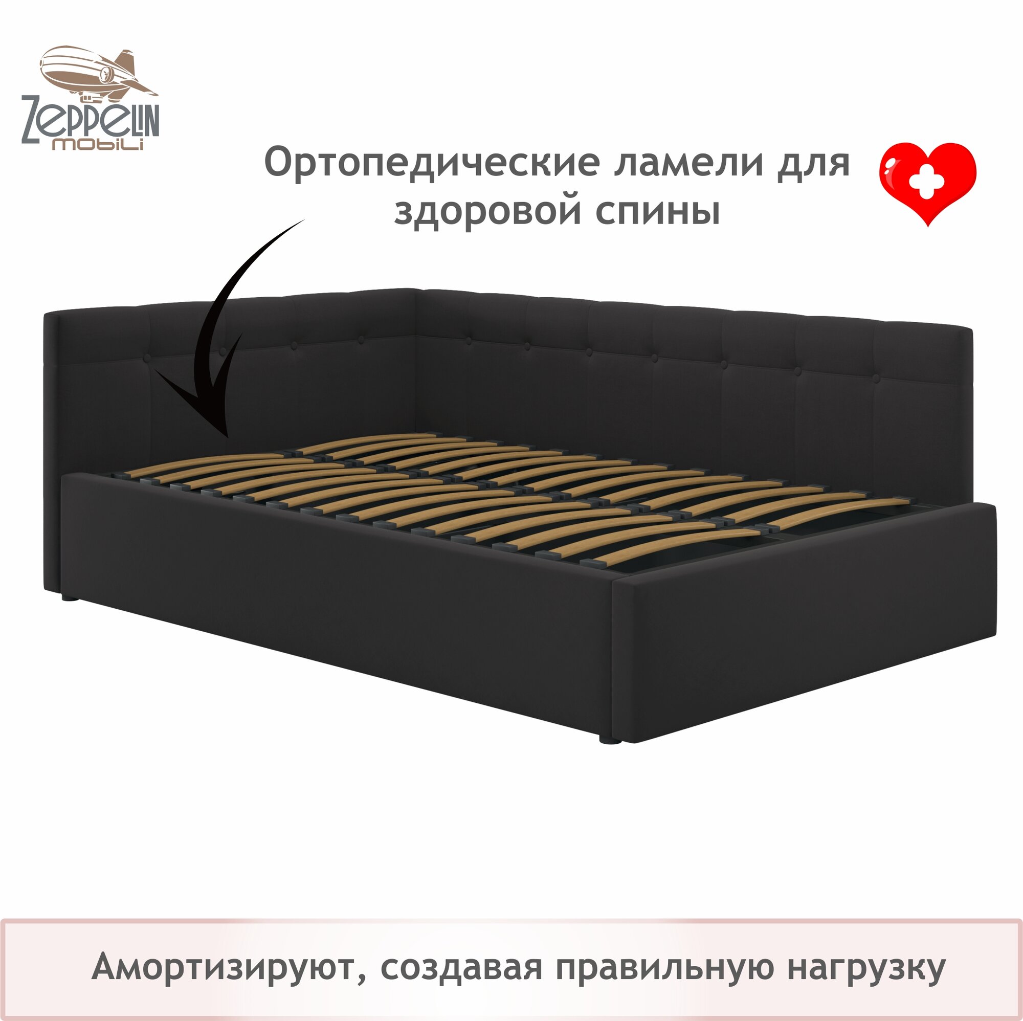 Кровать-тахта угловая Bonna 120х200 черная ортопедическая, мягкая спинка из велюра, с ламелями 24 000 ₽