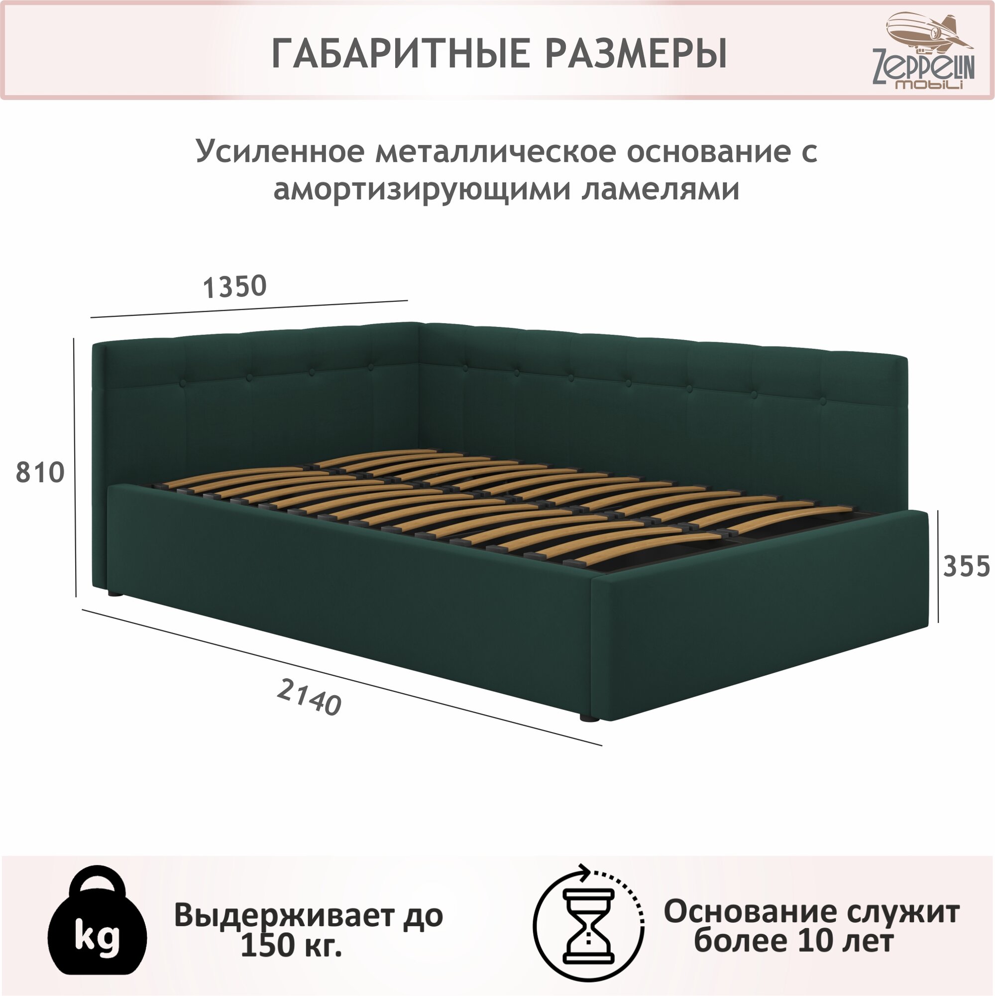Кровать-тахта угловая Bonna 120х200 зеленая ортопедическая, мягкая спинка из велюра, с ламелями информация: