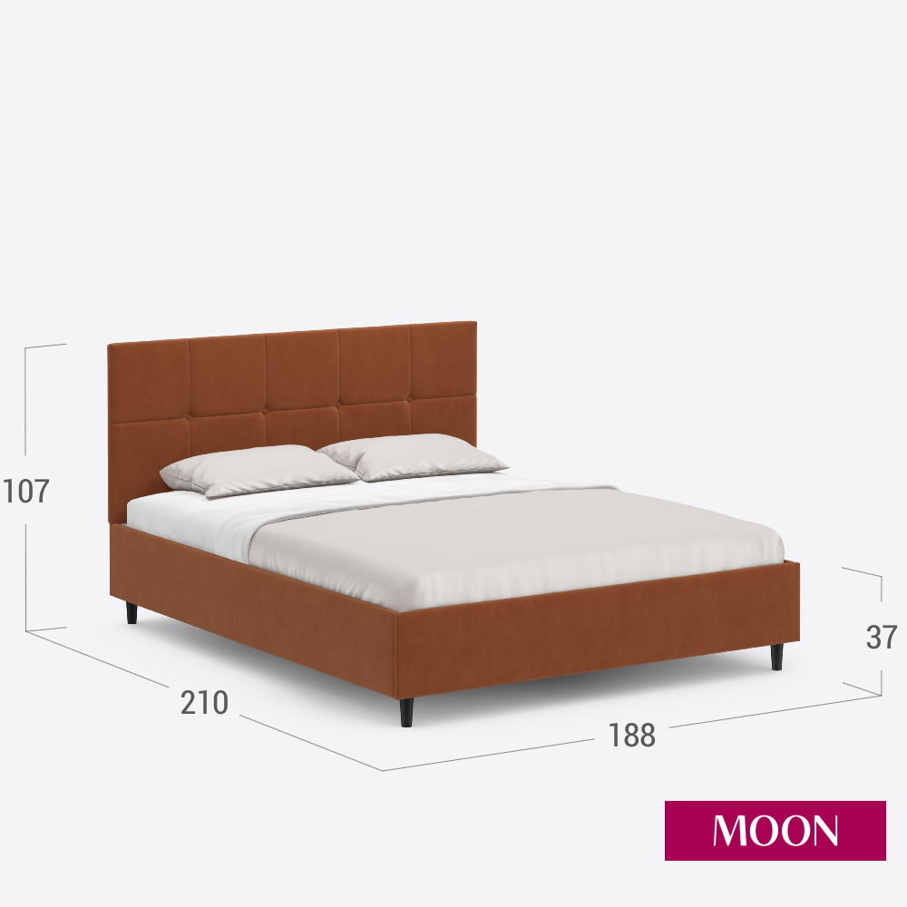 10 цен на Кровать двуспальная без подъемного механизма на ножках MOON FAMILY 1261, размер 180х200 см, велюр оранжевый. Ортопедическое основание в комплекте