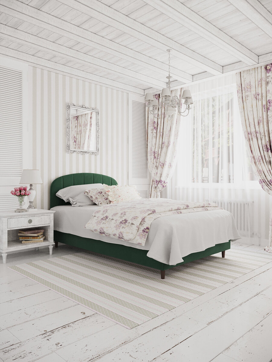10 цен на Кровать односпальная без подъемного механизма на ножках, MOON FAMILY 1262, размер 120х200 см, велюр зеленый. Ортопедическое основание в комплекте