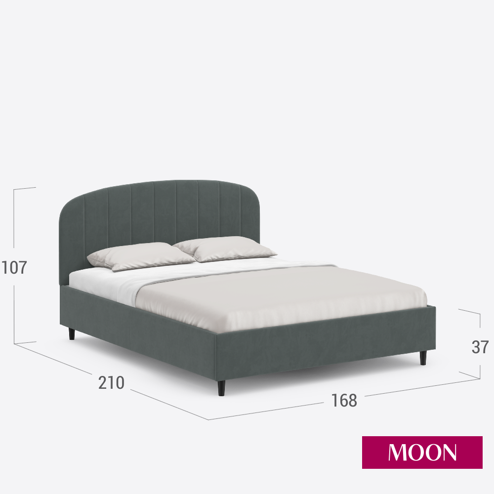 10 цен на Кровать двуспальная без подъемного механизма на ножках, MOON FAMILY 1262, размер 160х200 см, велюр серый. Ортопедическое основание в комплекте