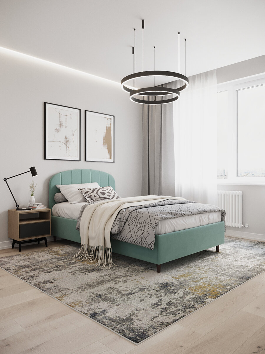 Кровать односпальная без подъемного механизма на ножках, MOON FAMILY 1262, размер 120х200 см, велюр светло-зеленый. Ортопедическое основание в комплекте информация: