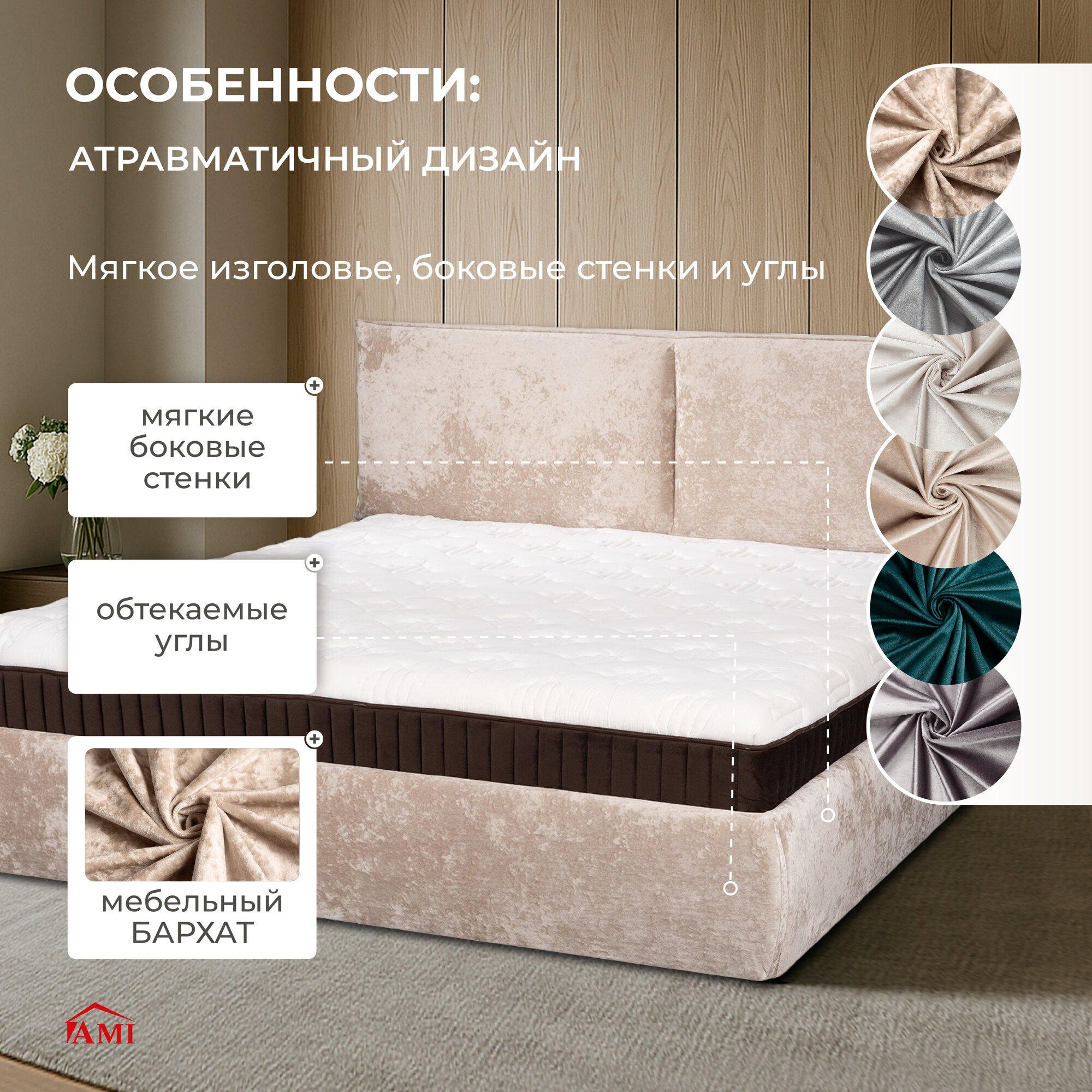 Двуспальная кровать 180х200 с подъемным механизмом Британия для дома и спальни, бархат серо-бежевый, Ами Мебель информация: