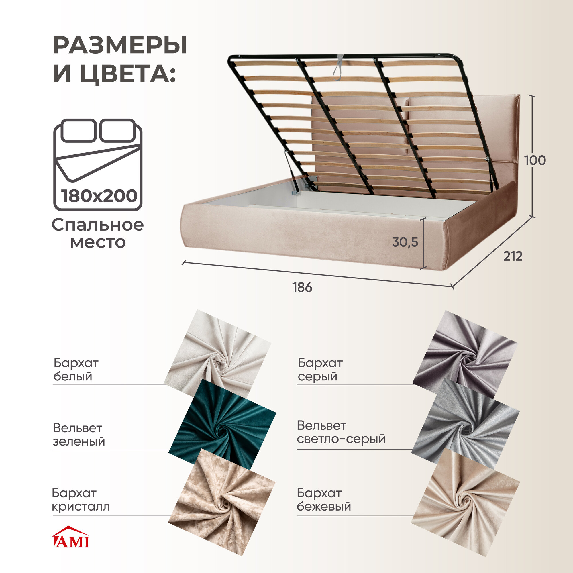 Двуспальная кровать 180х200 с подъемным механизмом Британия для дома и спальни, бархат бежевый, Ами Мебель информация: