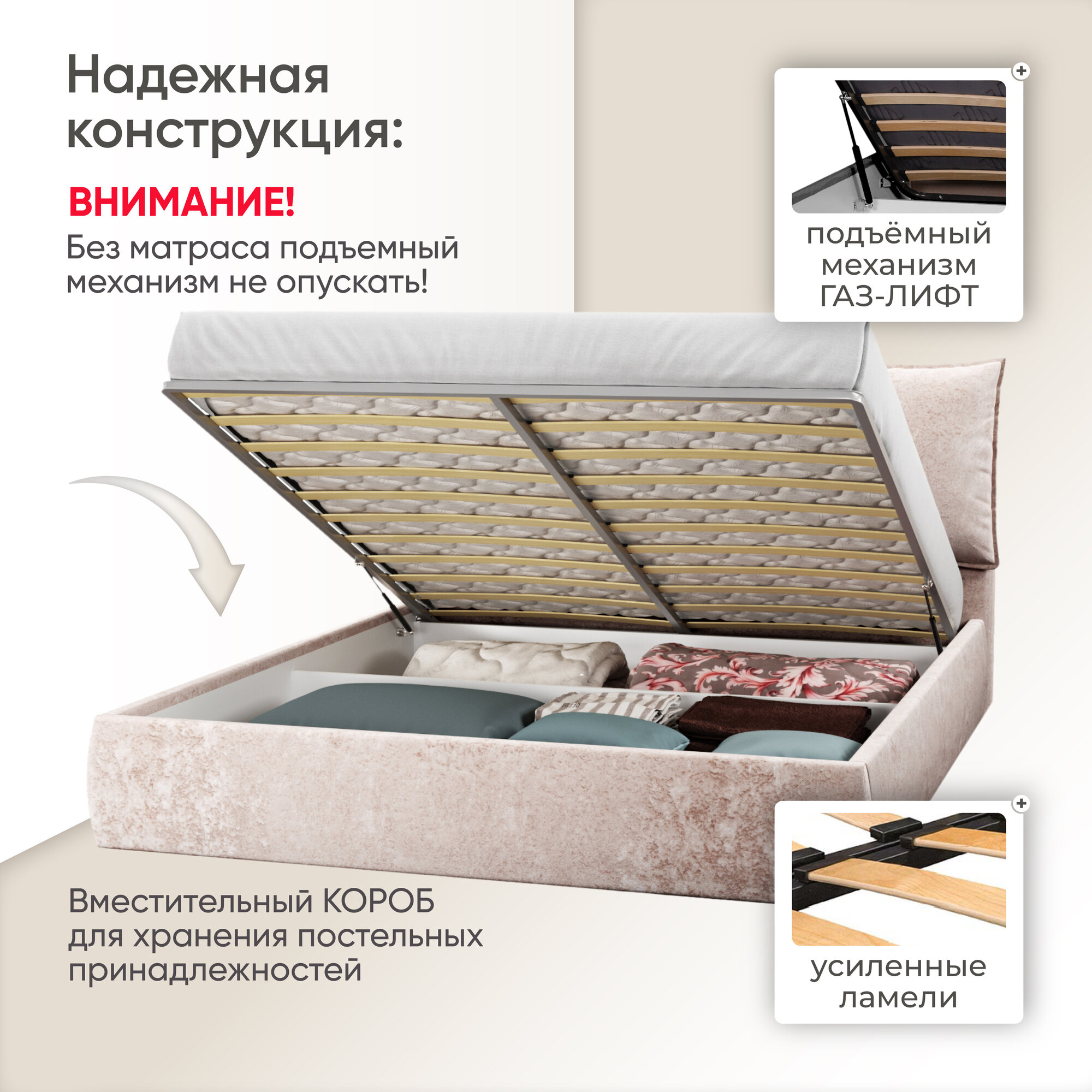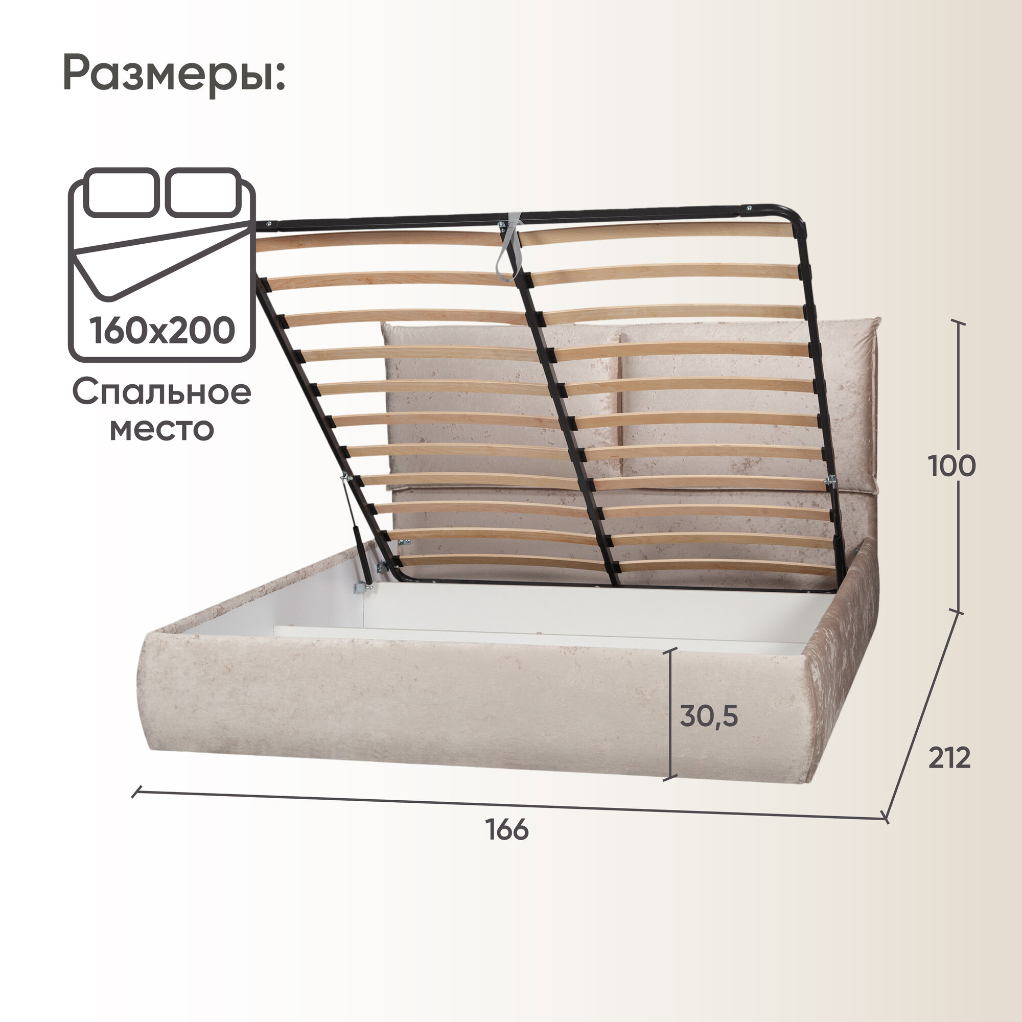 Отзывы на Двуспальная кровать 160х200 с подъемным механизмом Британия для дома и спальни, бархат серо-бежевый, Ами Мебель