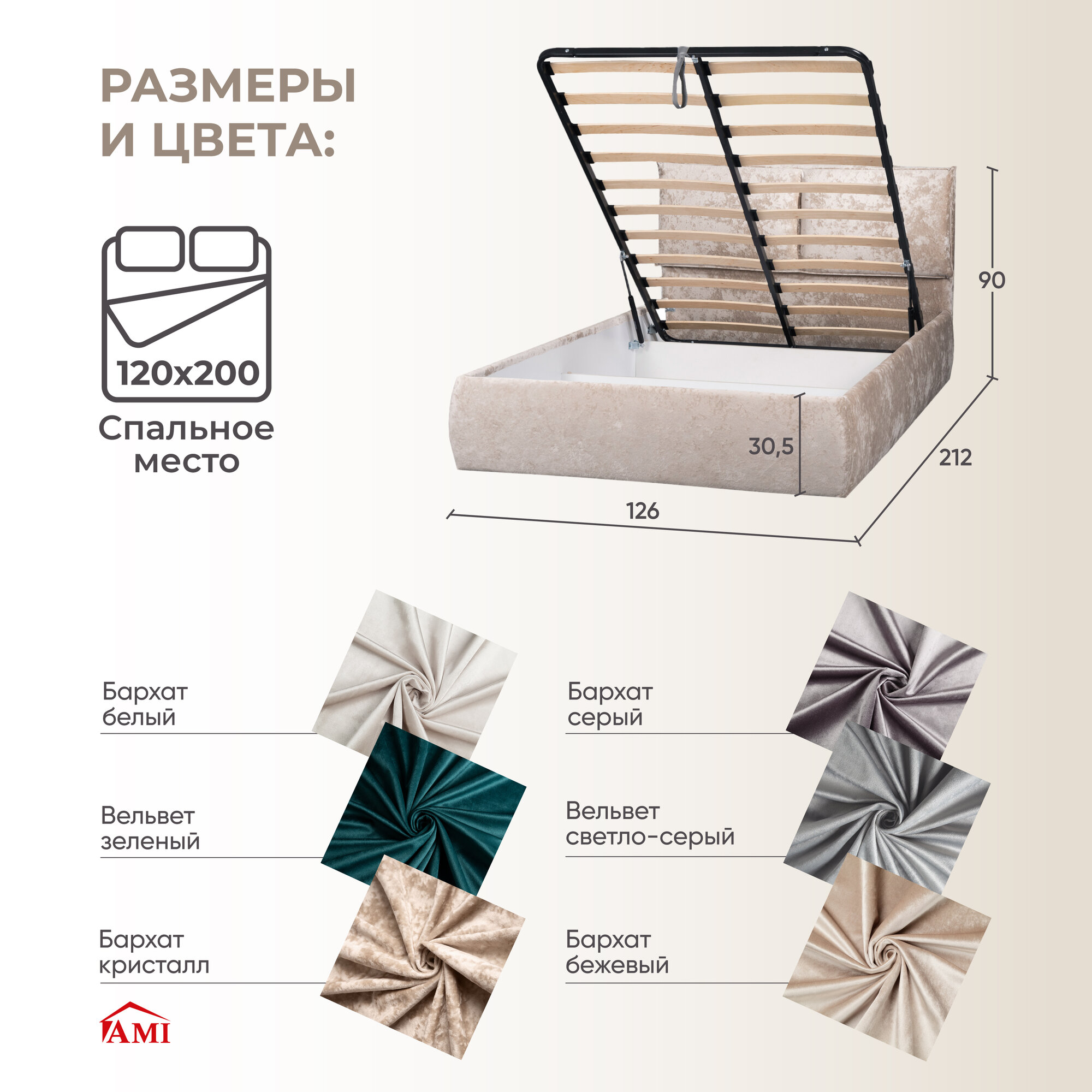 Полутороспальная кровать 120х200 с подъемным механизмом Британия для дома и спальни, бархат серо-бежевый, Ами Мебель информация: