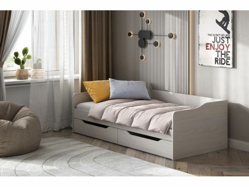 БРВ-Мебель Кровать односпальная с ящиком шириной 90 см Индиана JLOZ1S 90 дуб саттер