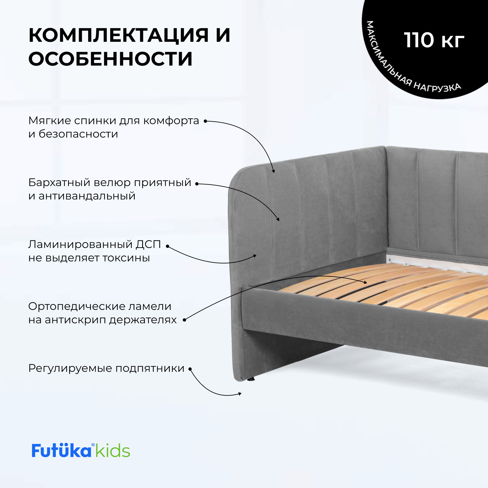 Futuka Kids Диван-кровать Crecker Newtone 021 с ящиком для белья (дополнительным спальным местом), цвет серый, 160x80 см. информация: