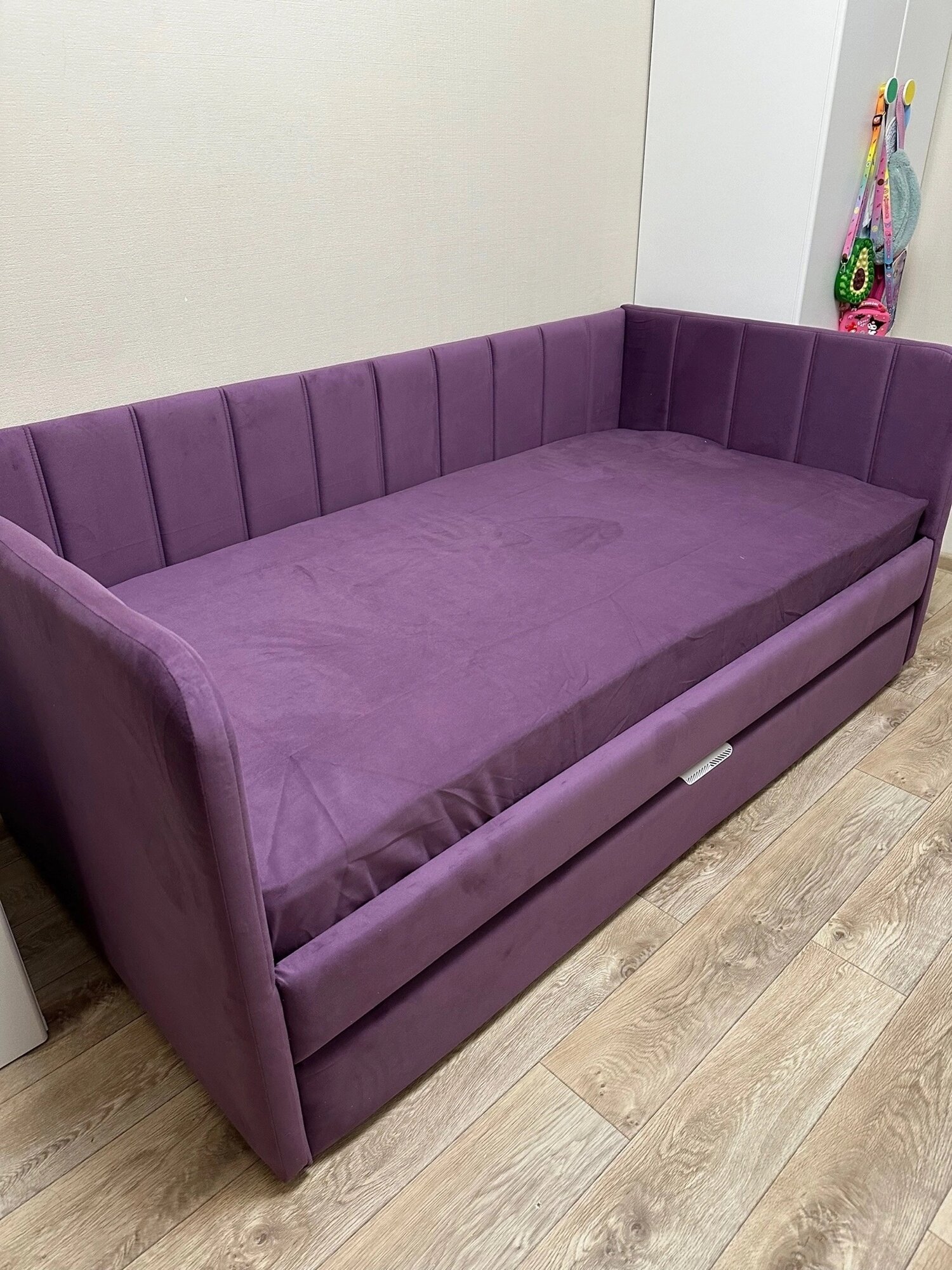 Futuka Kids Диван-кровать Crecker Teddy 326 с ящиком для белья (дополнительным спальным местом), цвет сирень, 180x90 см. 31 000 ₽