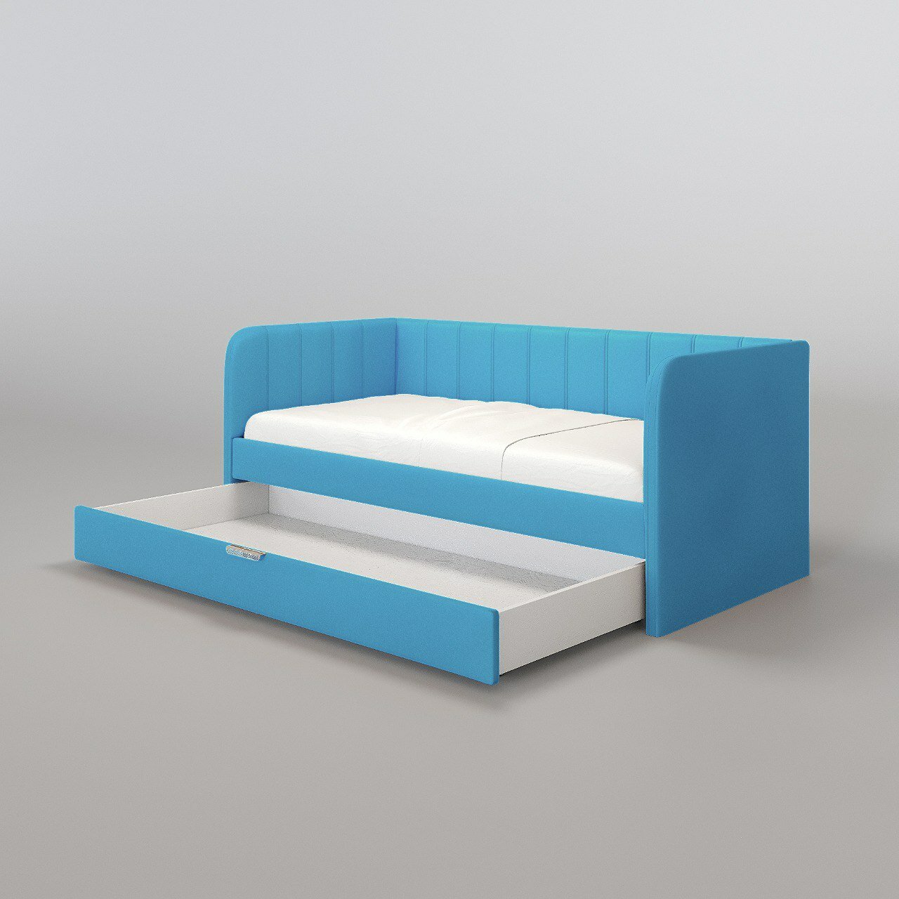 Детский диван-кровать Майя 90х200 см морская волна с выкатным ящиком и бортиком Кровать детская от 3х лет Без матраса