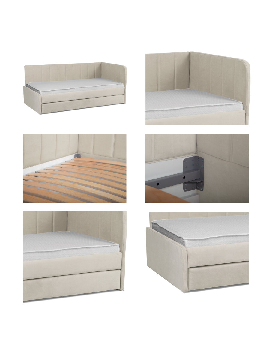 Futuka Kids Диван-кровать Crecker Teddy 328 с ящиком для белья угловая (с дополнительным спальным местом)+чехол на матрас, цвет кремовый, 160x80 см. информация: