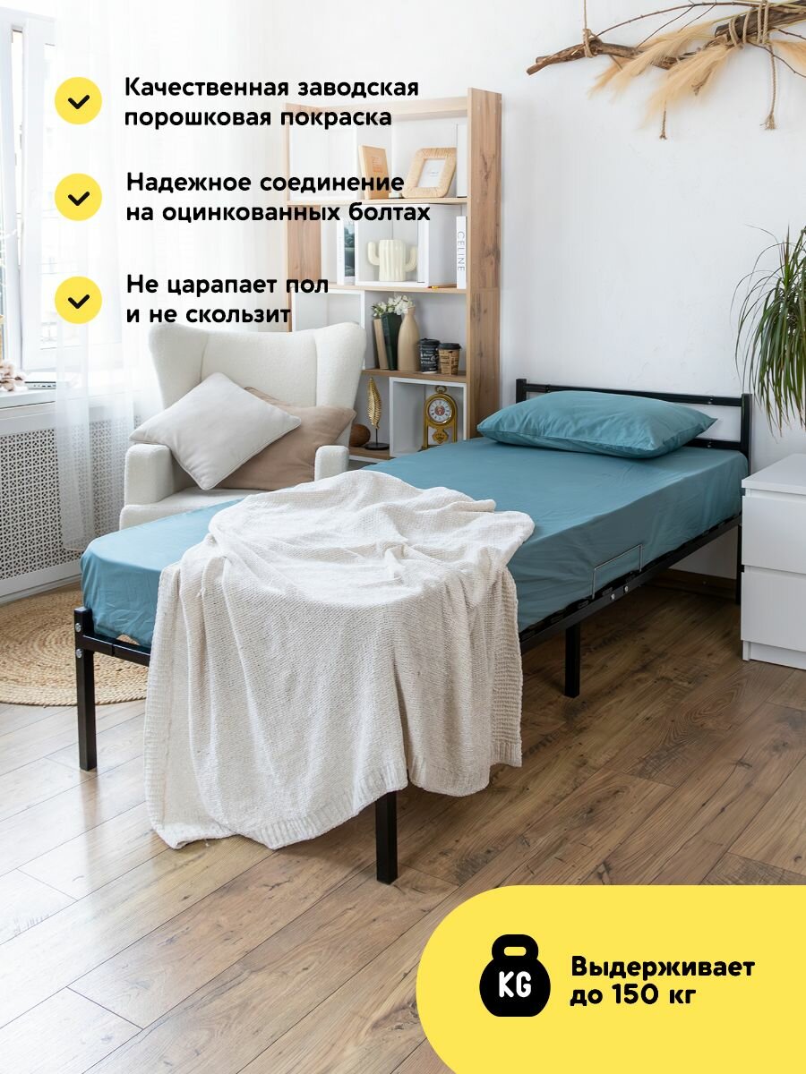 Кровать односпальная 80х190 см металлическая Зумба, с ортопедическим основанием, с изголовьем, черная 7 000 ₽