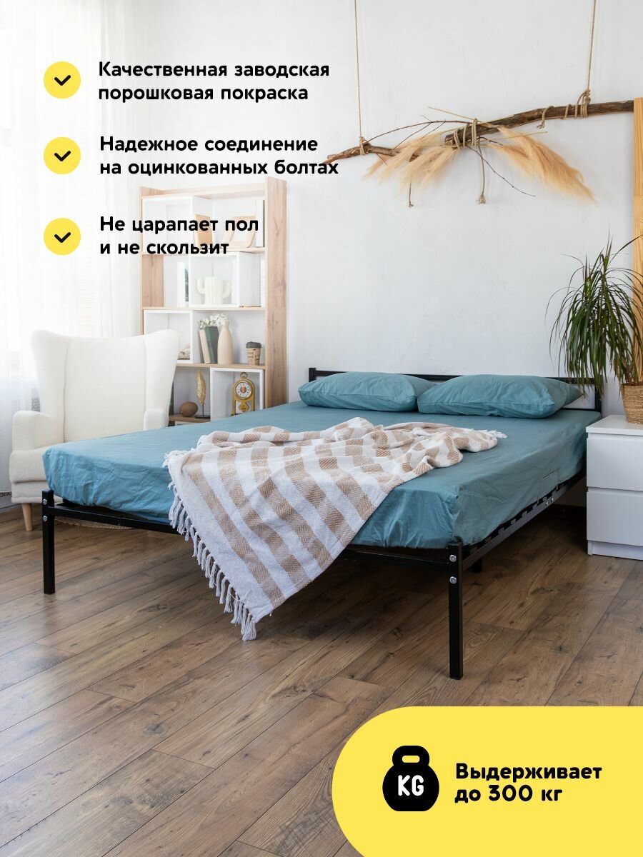 Кровать двуспальная 140х200 см Танго, металлическая с ортопедическим основанием, черная информация: