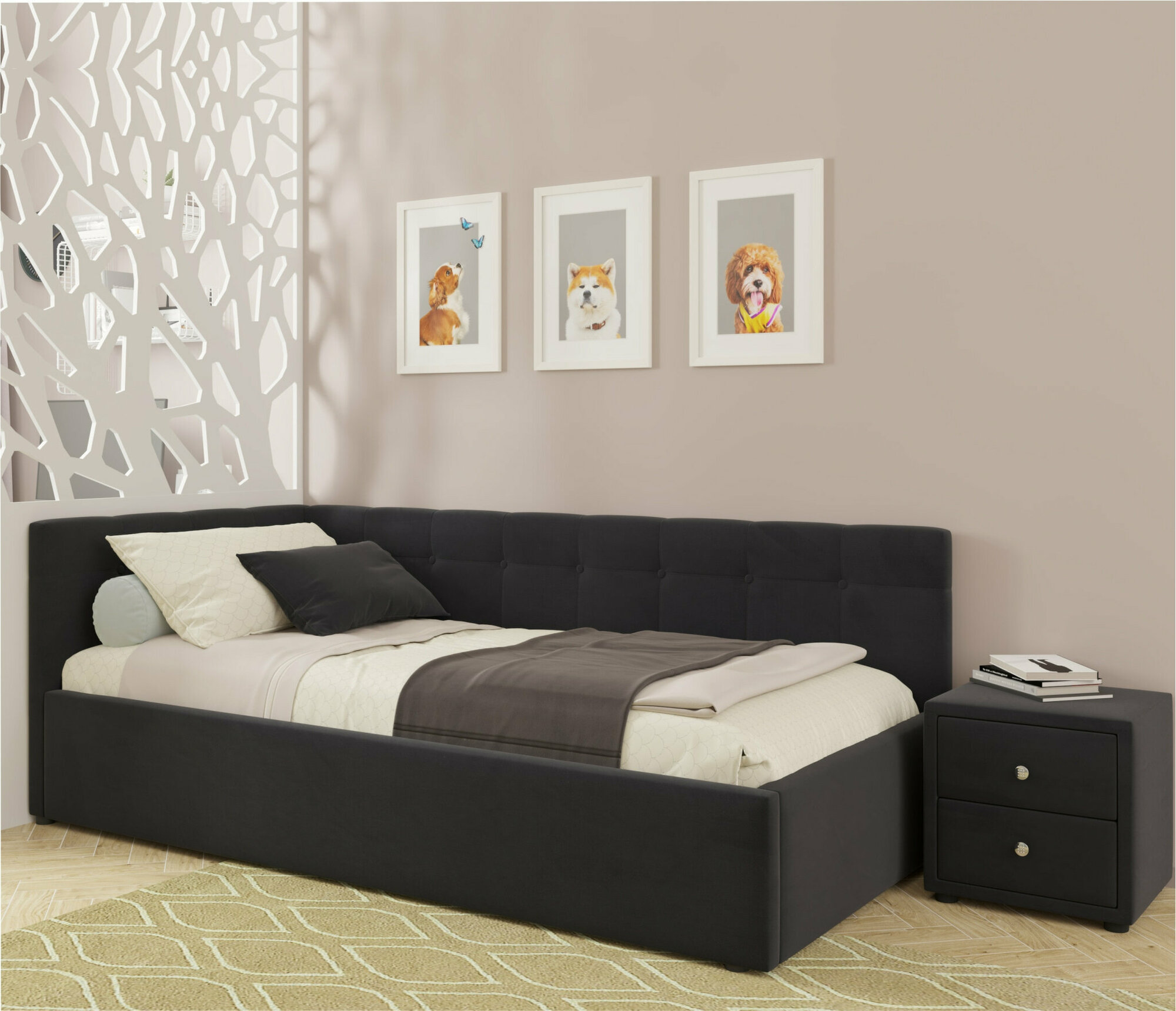 Отзывы на Односпальная кровать-тахта Bonna 900 темная угловая Zeppelin, с подъемным механизмом, 90х200, мягкая из велюра, с ящиком для хранения