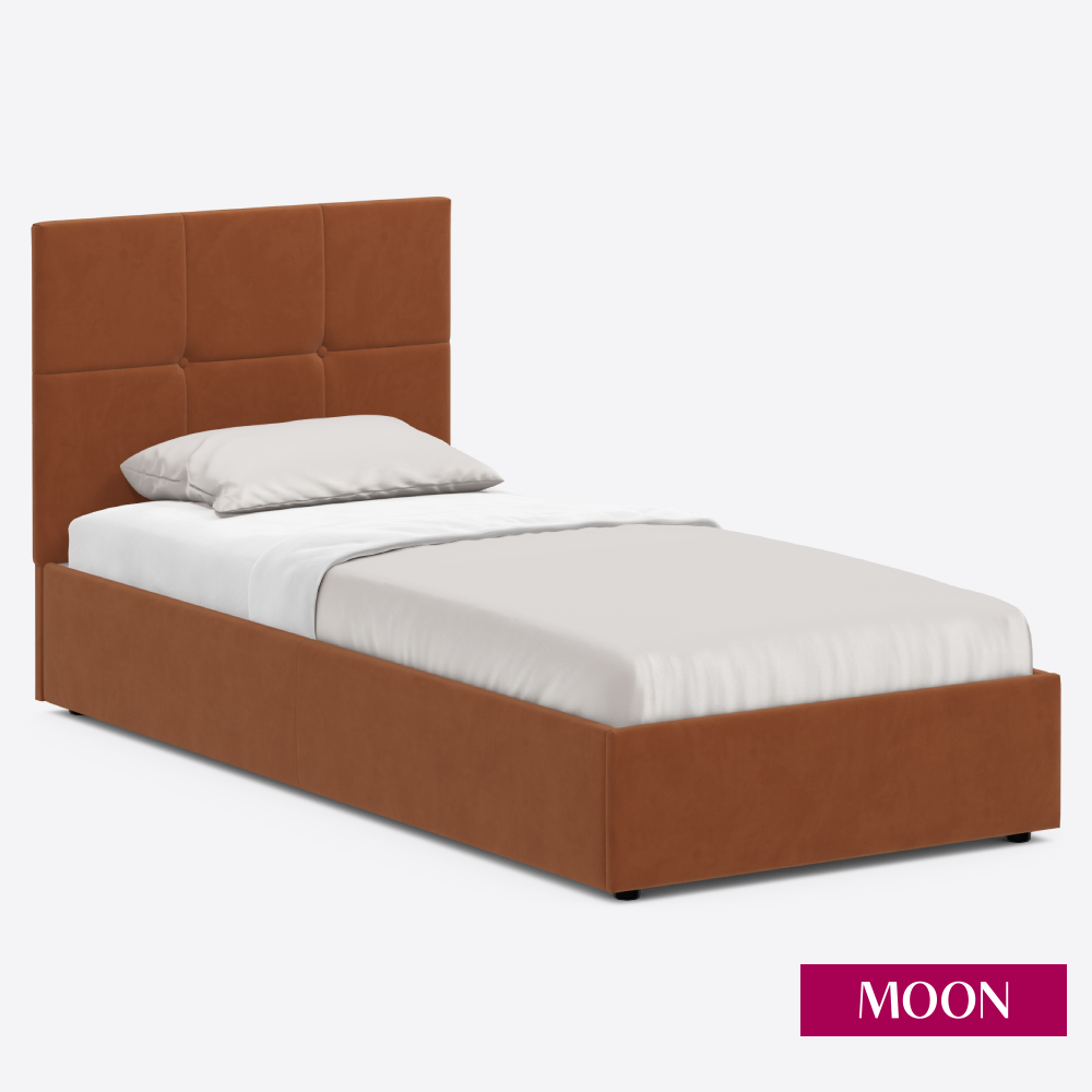 10 цен на Кровать односпальная без подъемного механизма MOON FAMILY 1261, размер 90х200 см, велюр оранжевый. Ортопедическое основание в комплекте