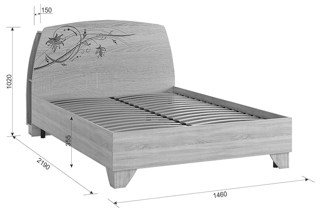 Кровать двуспальная с ортопедическим основанием "Виктория-1" 160х200 см, цвет Дуб сонома, с принтом, Mebelson 18 260 ₽