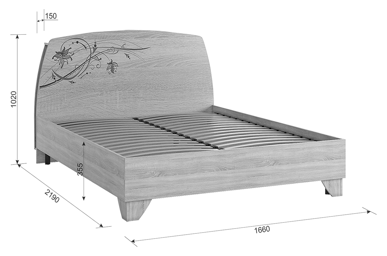 Кровать двуспальная с ортопедическим основанием "Виктория-1" 160х200 см, цвет Дуб сонома, с принтом, Mebelson 18 260 ₽