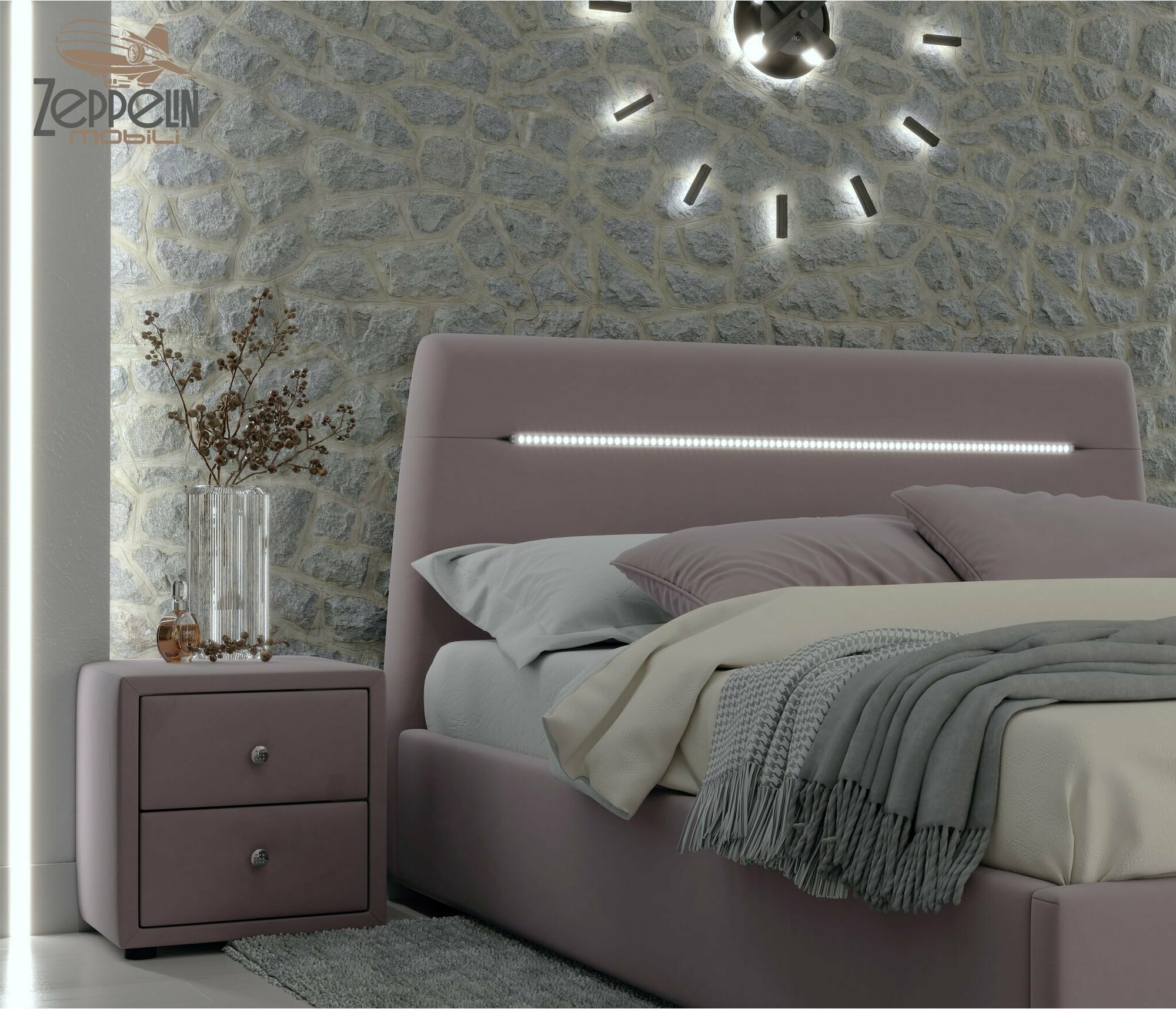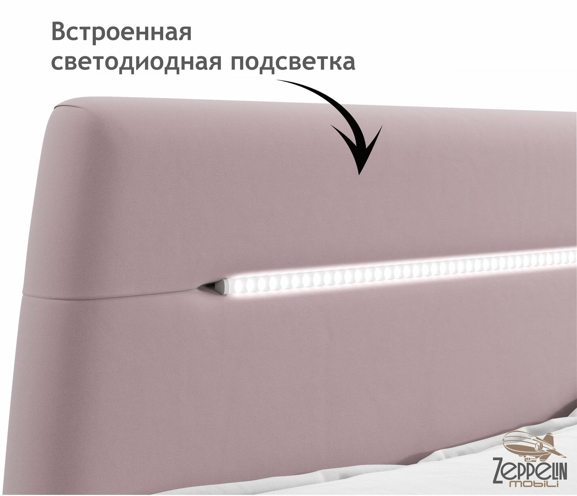 Кровать с подсветкой NEO 160х200 Zeppelin Mobili подъемная из велюра лиловая, с ортопедическими ламелями, с ящиком для хранения информация: