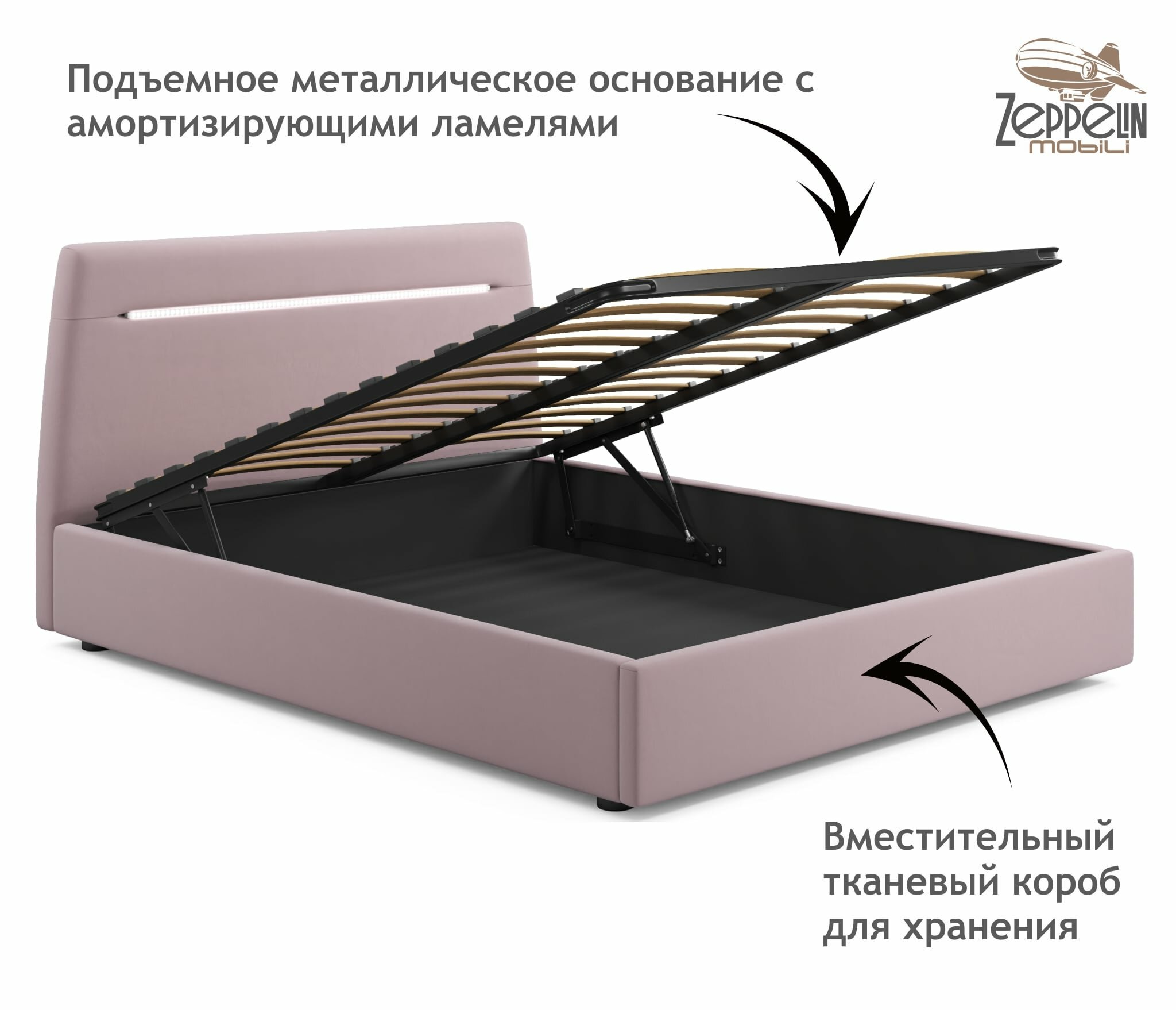 Отзывы на Кровать с подсветкой NEO 160х200 Zeppelin Mobili подъемная из велюра лиловая, с ортопедическими ламелями, с ящиком для хранения