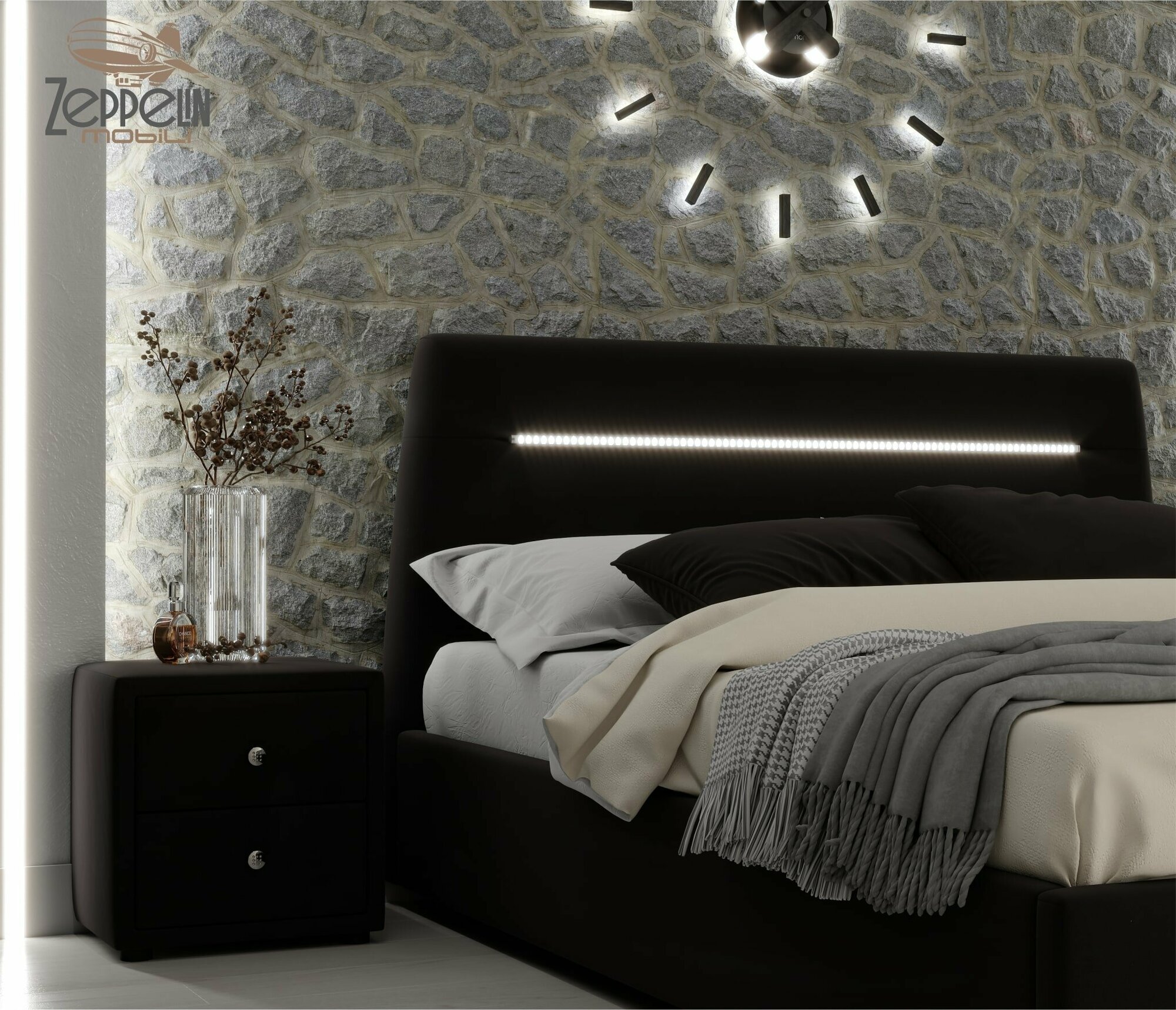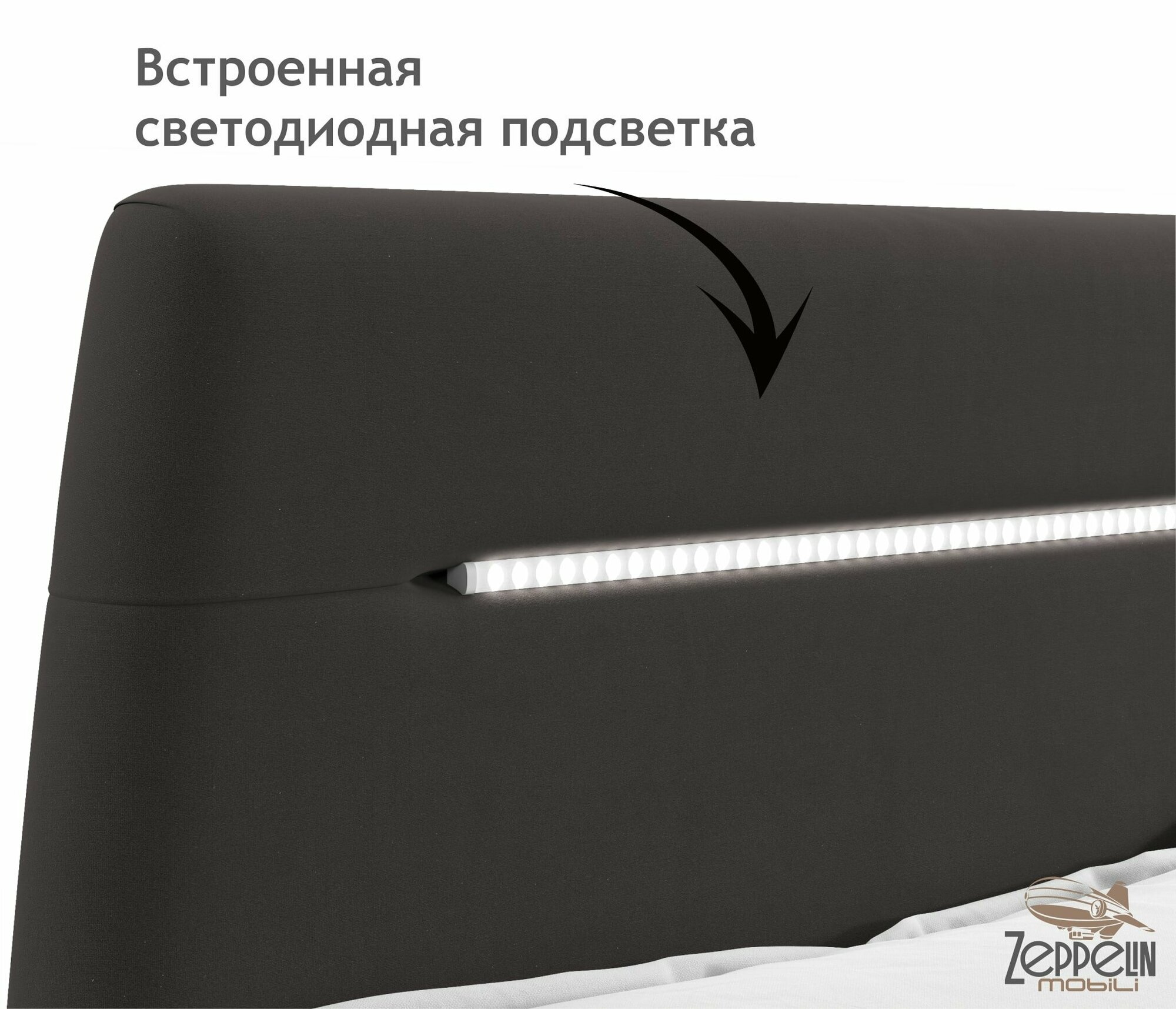 Кровать с подсветкой NEO 160х200 Zeppelin Mobili подъемная из велюра темная с ортопедическими ламелями, с ящиком для хранения 24 990 ₽