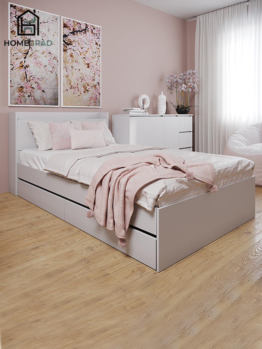 Двуспальная кровать с ящиками и головной нишей Astra 120 см, белая информация: