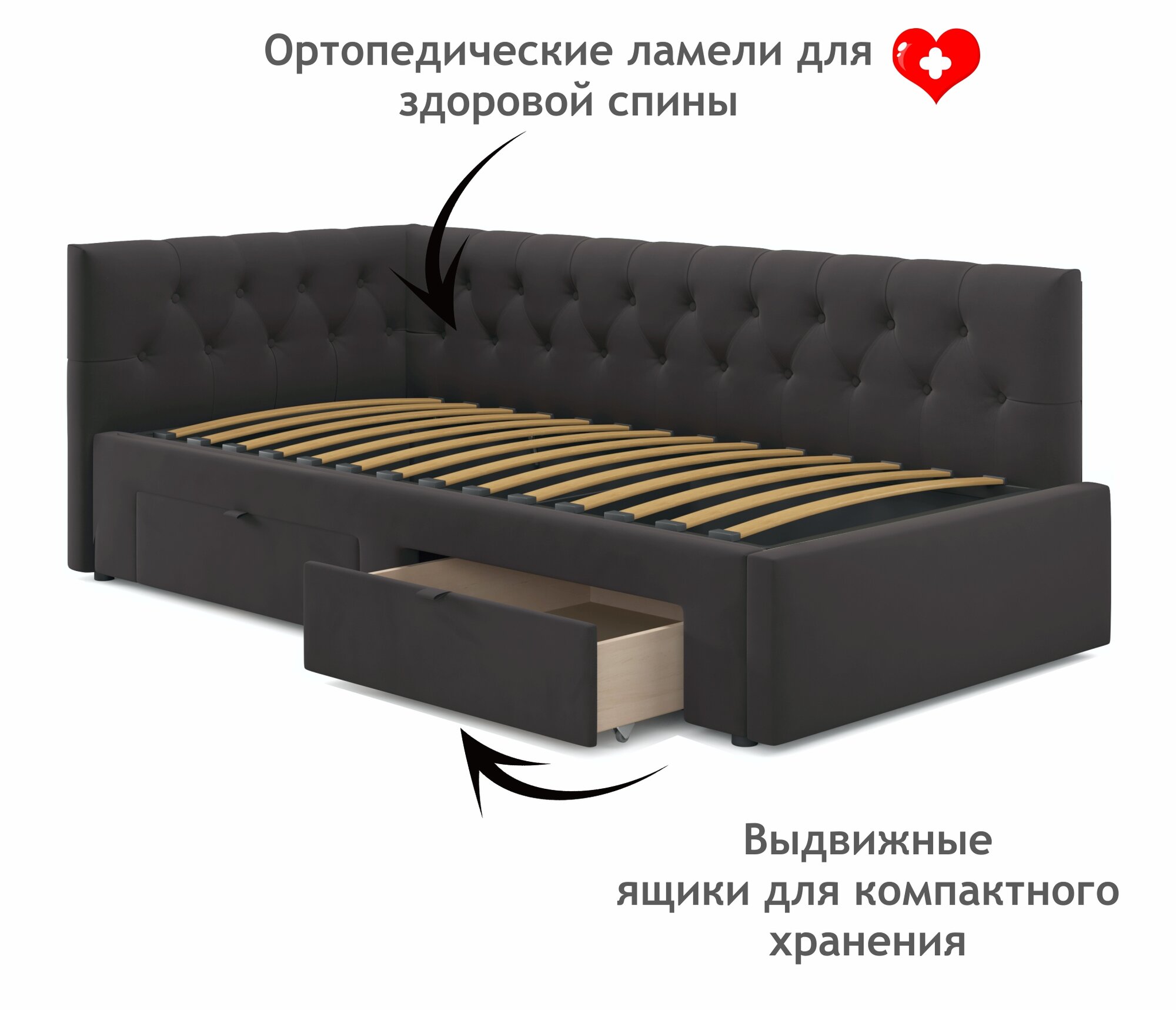 Односпальная кровать-тахта угловая Afelia Zeppelin с ящиками и бортиком 900 изумруд 27 710 ₽