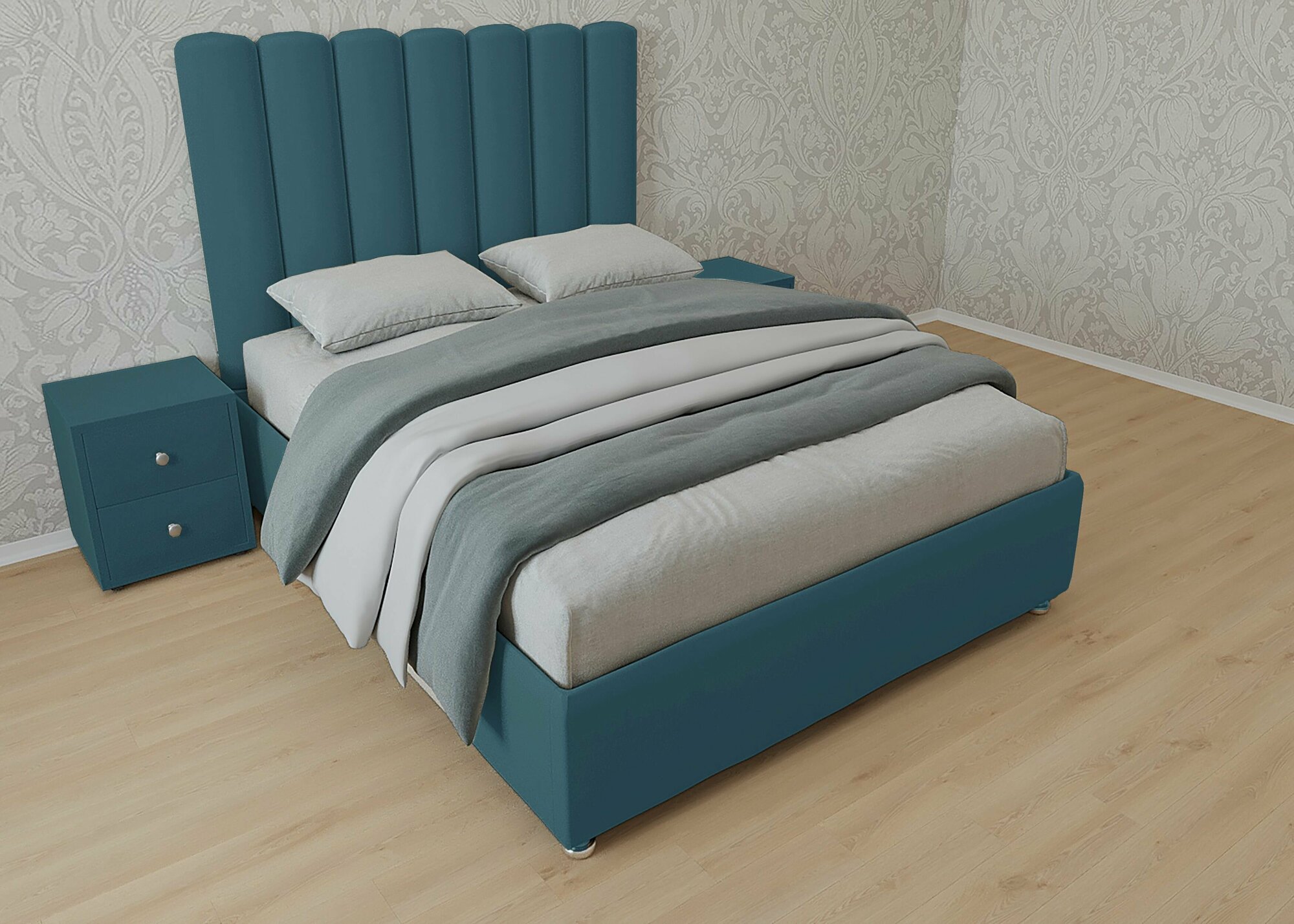 Двуспальная кровать Женева Нью 160x200 с подъемным механизмом и с коробом для белья велюр бирюзовый ножки 5 см 35 000 ₽