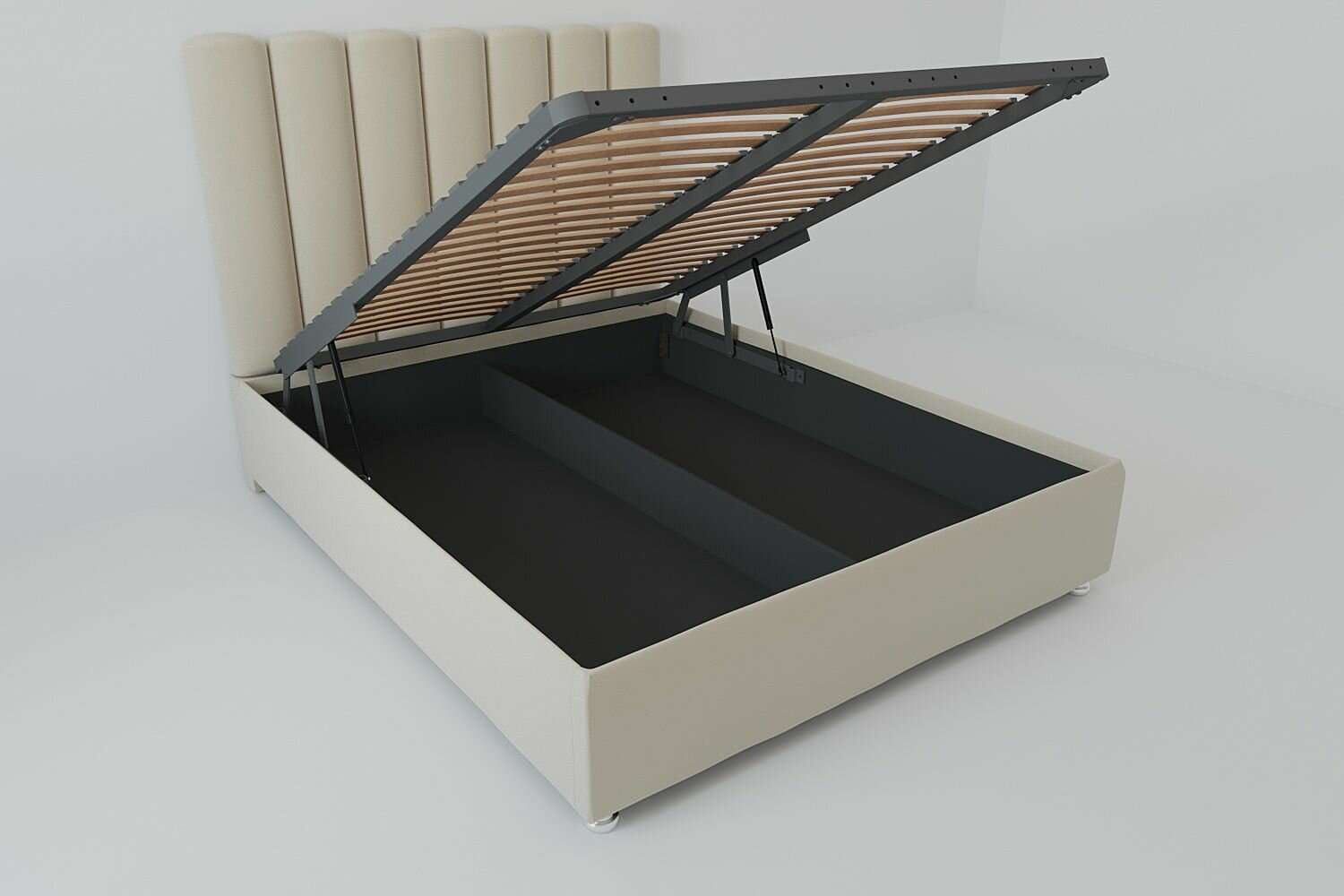 Двуспальная кровать Женева Нью 180x200 с подъемным механизмом и с коробом для белья велюр бежевый ножки 13 см хром 35 500 ₽