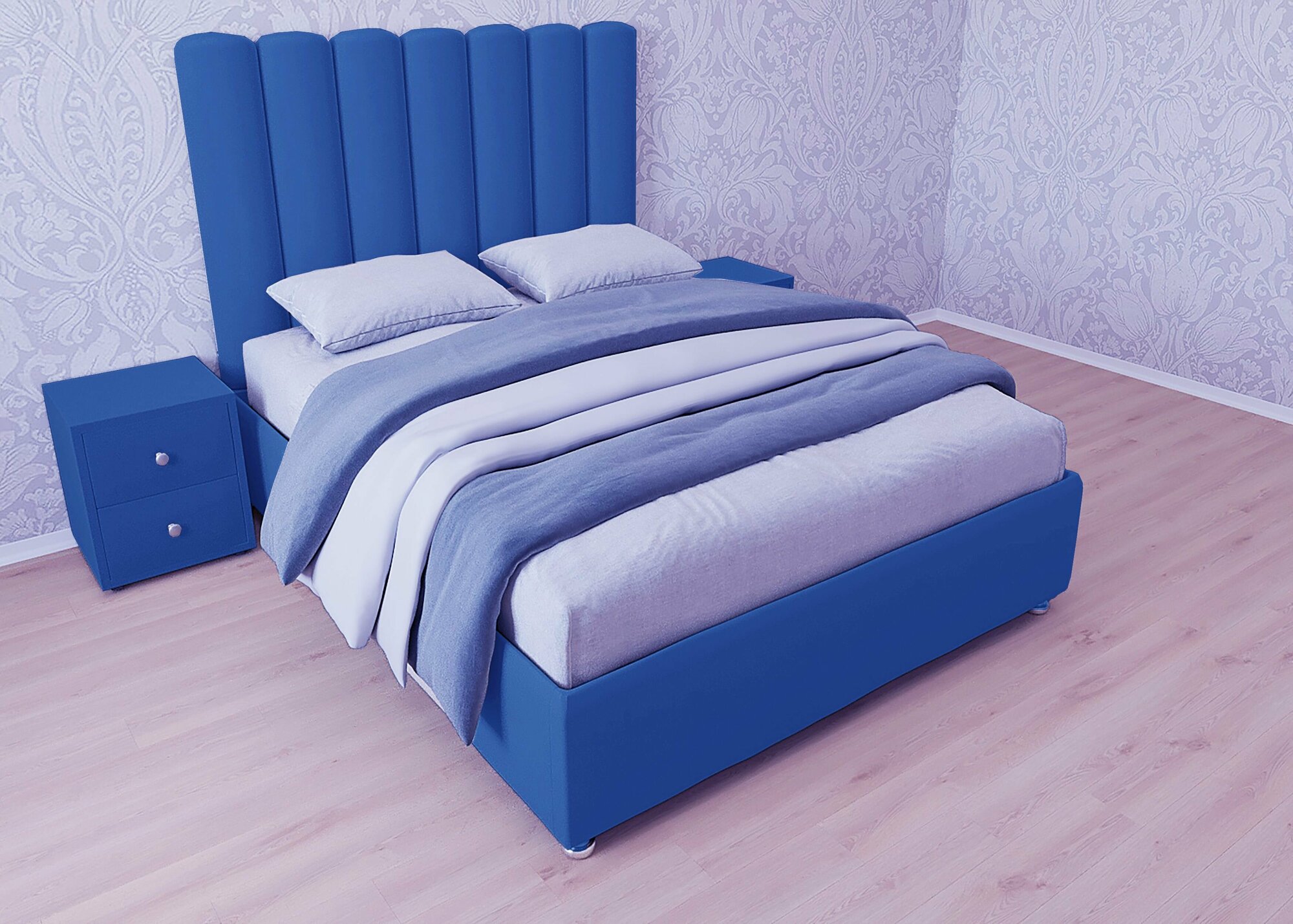 Двуспальная кровать Женева Нью 160x200 с подъемным механизмом и с коробом для белья велюр синий ножки 13 см хром 35 000 ₽