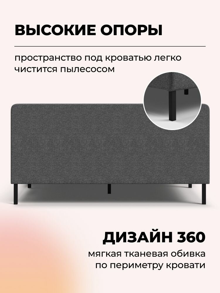 10 цен на Двуспальная кровать УНА, рогожка Malmo серый/черный, 160х200 см