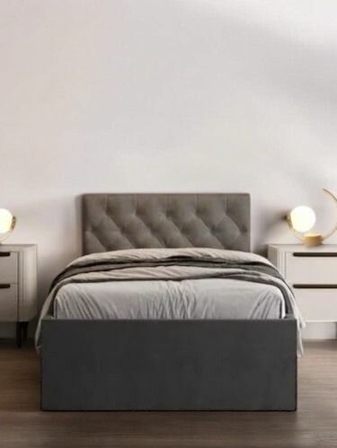 Кровать 90х200 с подъемным механизмом и ящиками для белья, Бона, Темно-серая 16 125 ₽