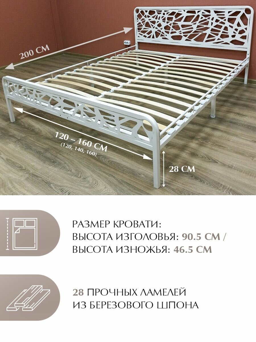 Двуспальная кровать орион, металлическая, железная, кованая, кремово-белая, 160х200 см информация: