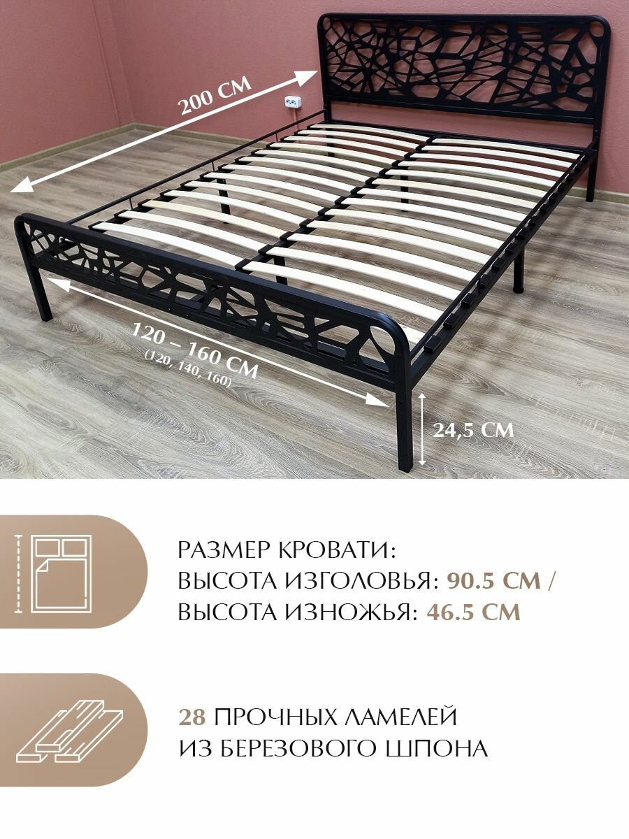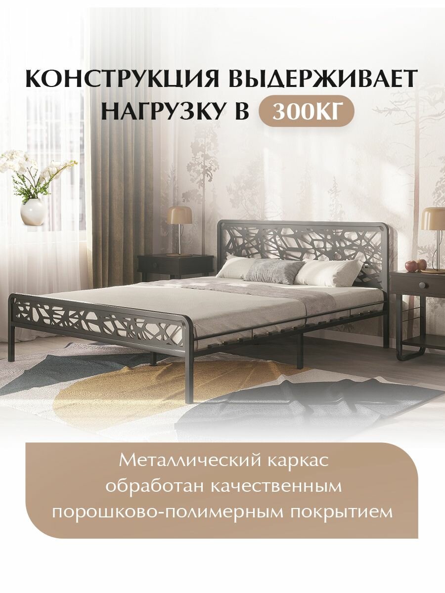 Двуспальная кровать орион, металлическая, железная, кованая, черная, 160х200 см информация:
