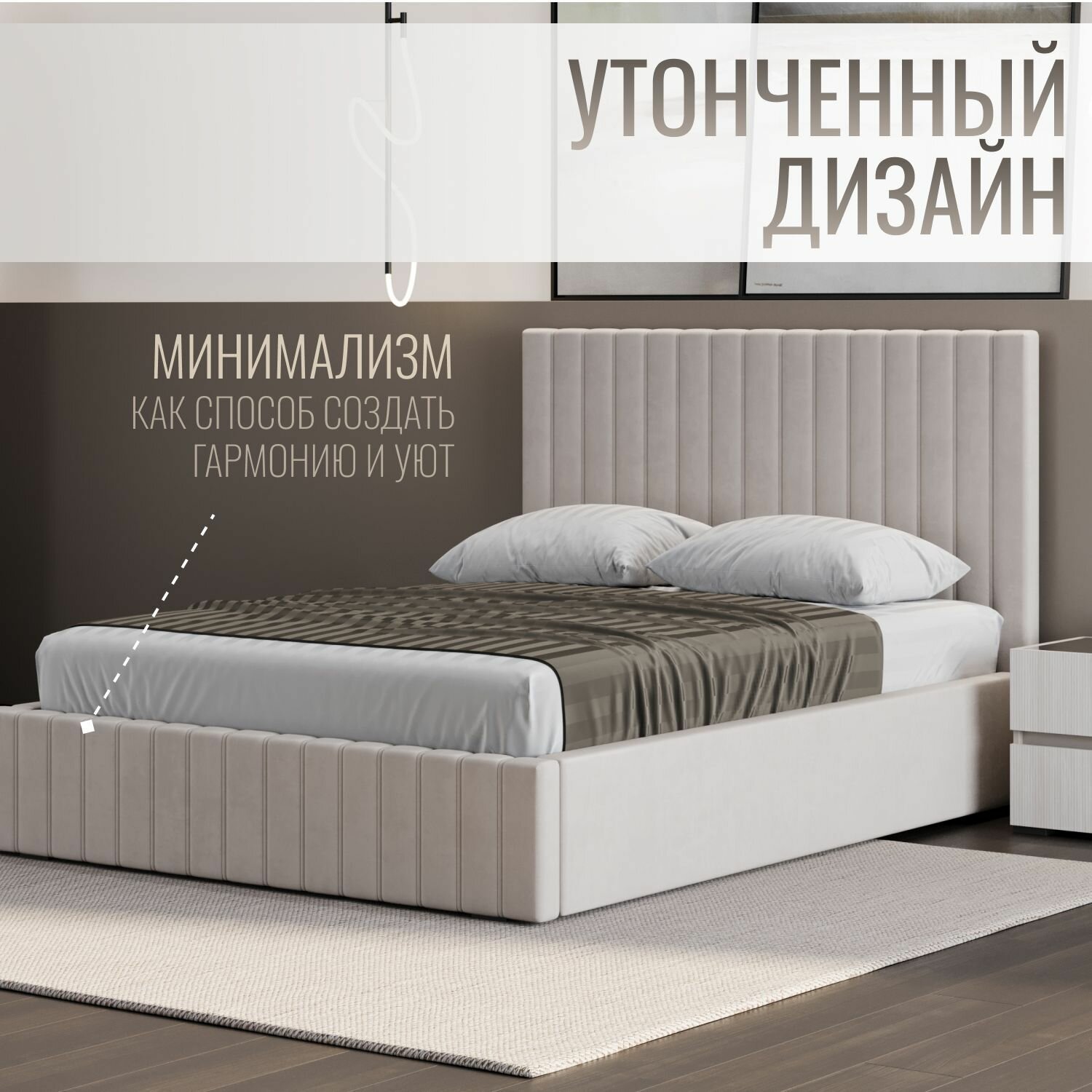 Кровать двуспальная велюр с подъемным механизмом 160х200 см бежевый 45 109 ₽