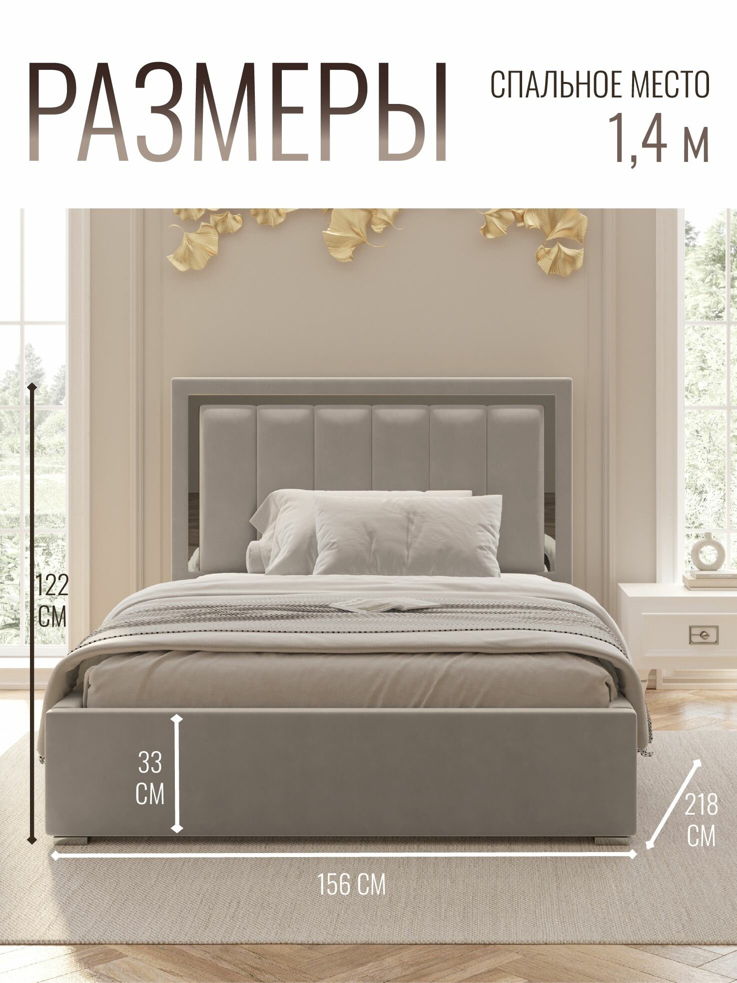 Кровать двуспальная велюр с подъемным механизмом 140х200 см бежевый 26 664 ₽