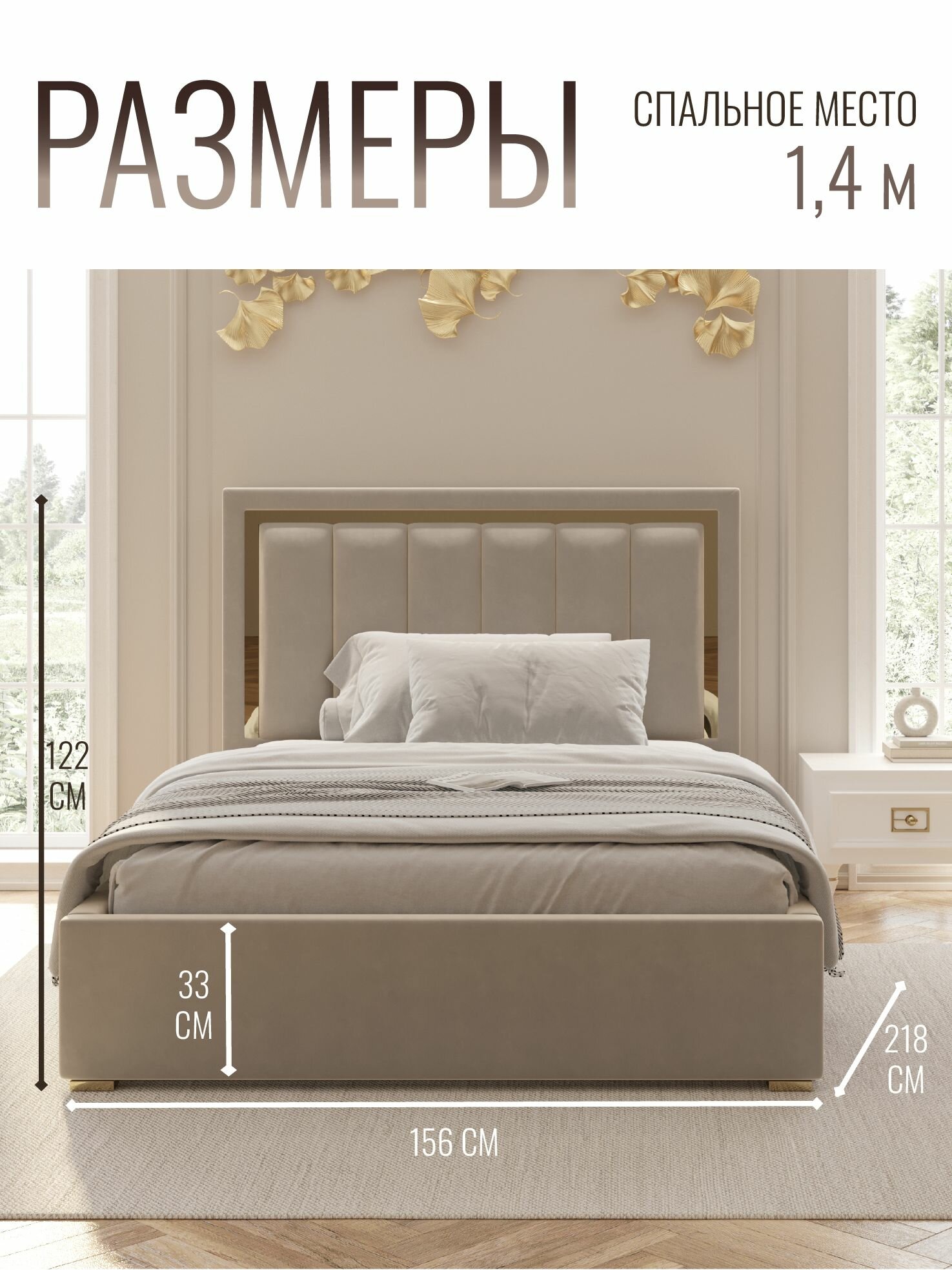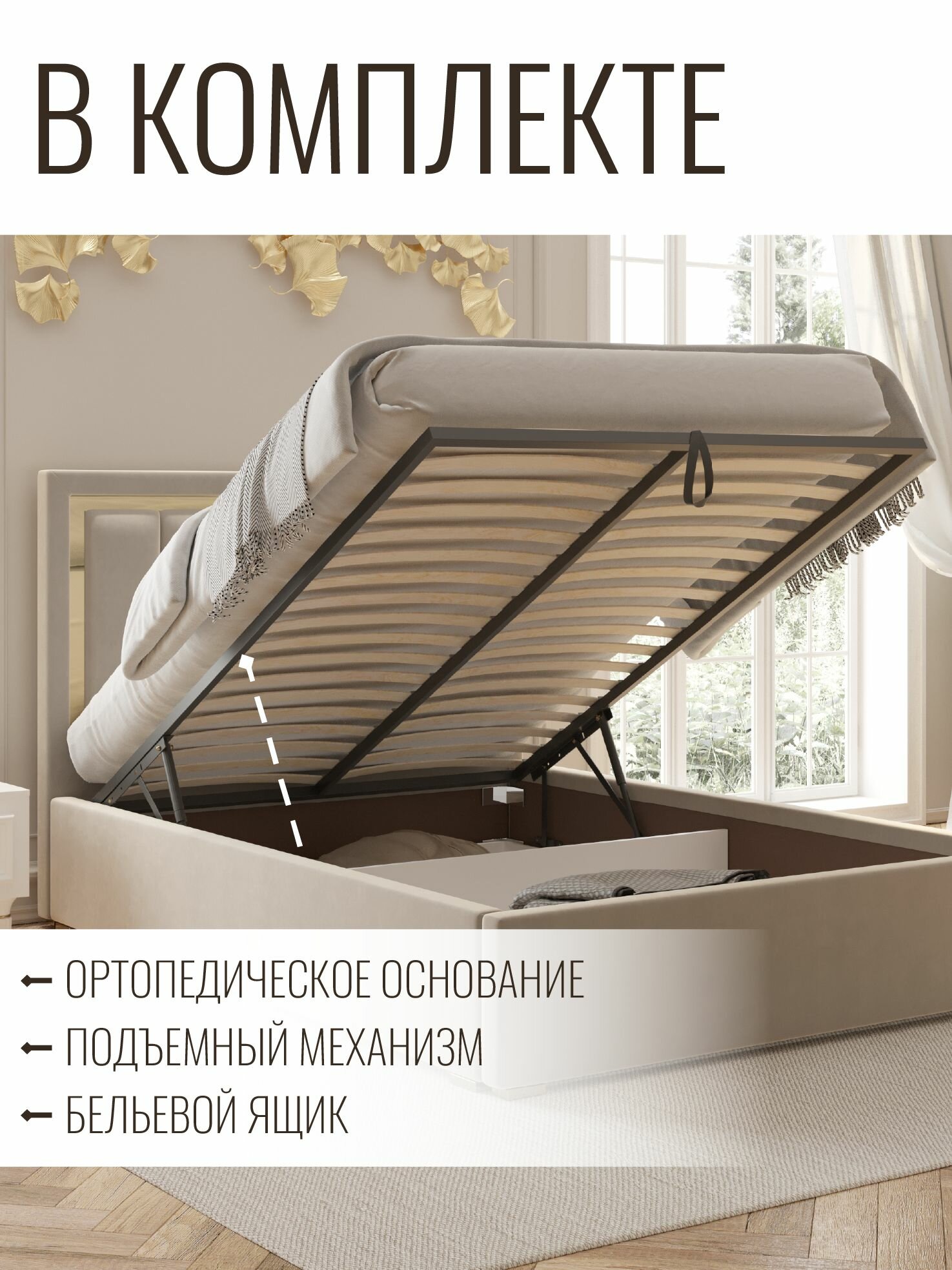 Отзывы на Кровать двуспальная велюр с подъемным механизмом 140х200 см коричневый золото