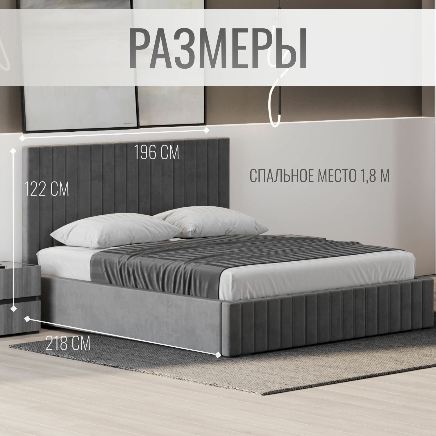Кровать двуспальная велюр с подъемным механизмом 180х200 см серый 73 211 ₽