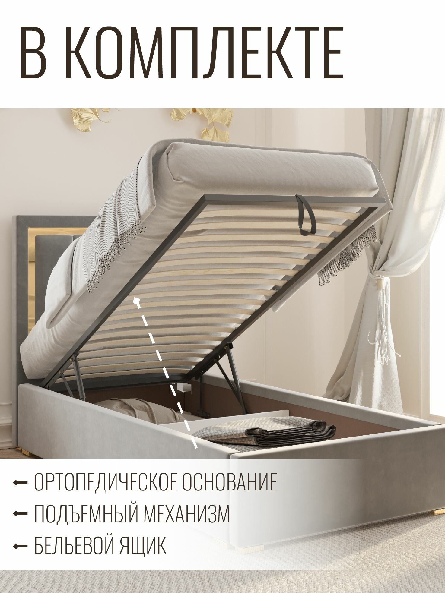 Кровать двуспальная велюр с подъемным механизмом 140х200 см серый золото 60 725 ₽