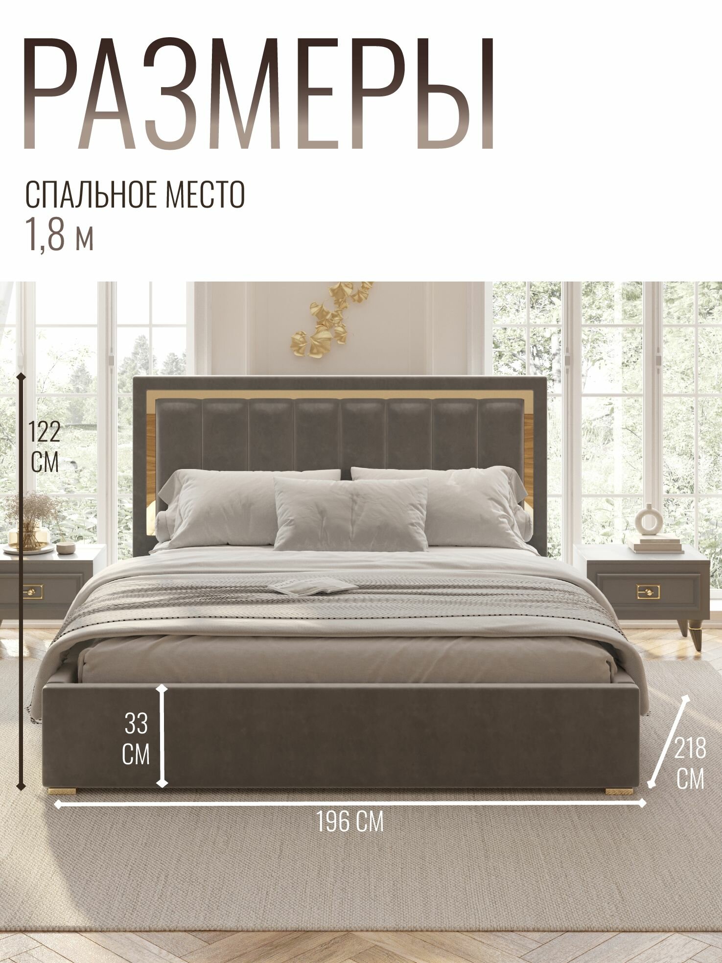 Кровать двуспальная велюр с подъемным механизмом 180х200 см серый золото информация: