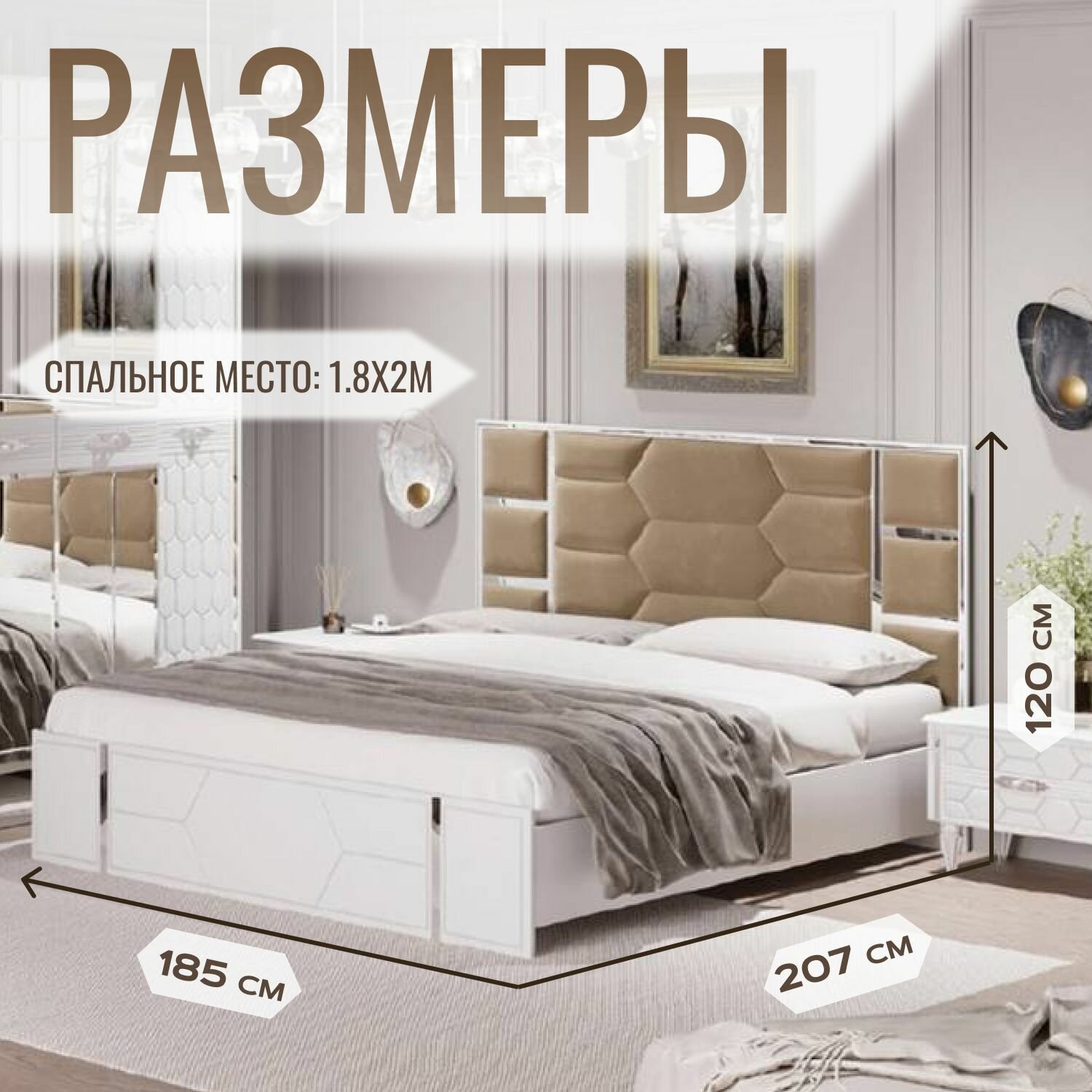 Двуспальная кровать Олимпия, 180x200х130 см, бежево-серебристая, велюр, МДФ 53 347 ₽