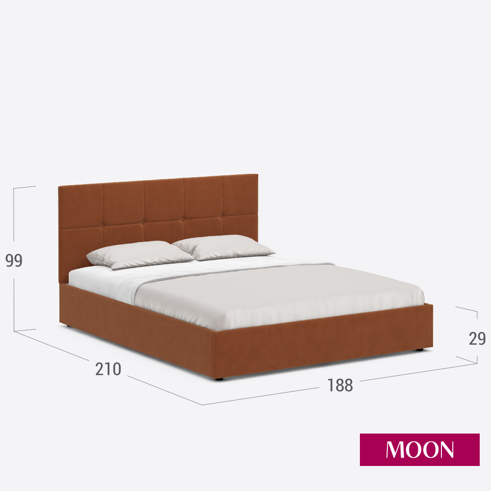 10 цен на Кровать двуспальная с подъемным механизмом MOON FAMILY 1261, размер 180х200 см, велюр оранжевый. Ортопедическое основание в комплекте