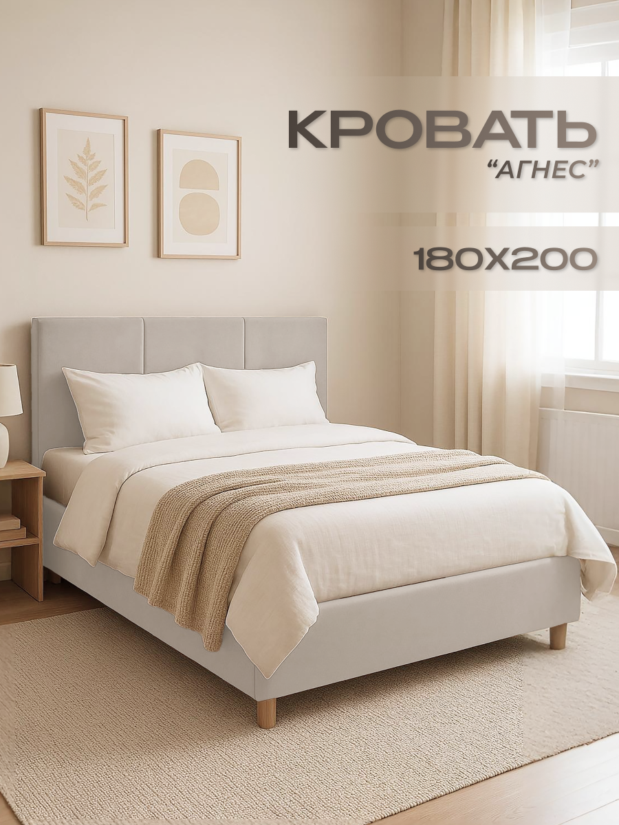 Кровать Агнес, 180x200, с подъемным механизмом, светло-серая информация: