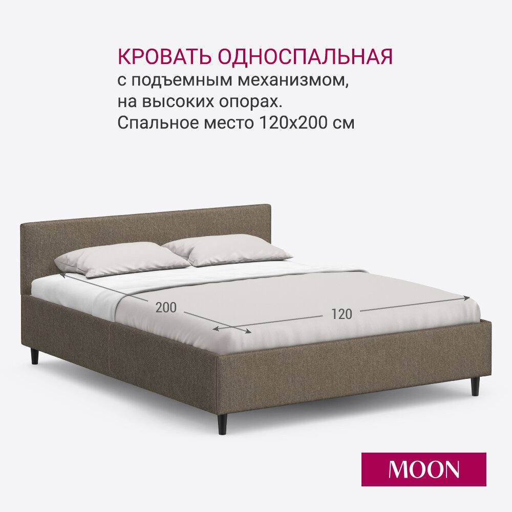 10 цен на Кровать с матрасом 120х200 см односпальная MOON FAMILY 1250, рогожка коричневая, с подъемным механизмом, основание входит в комплект