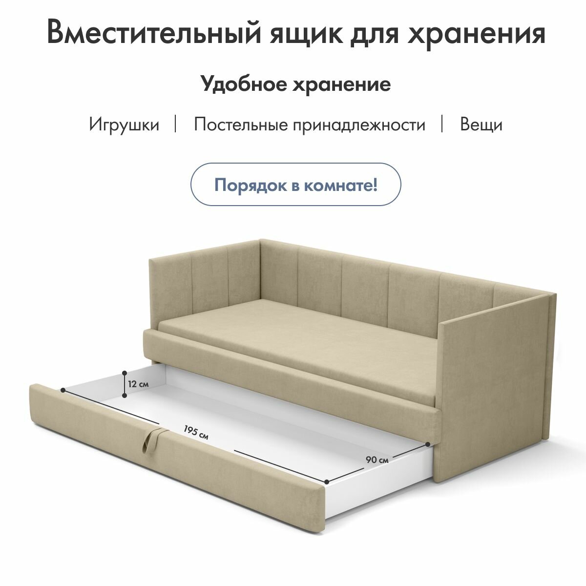 10 цен на Детский диван кровать Челси 90х200 см бежевый с матрасом, чехлом и выкатным ящиком Кровать детская от 3х лет