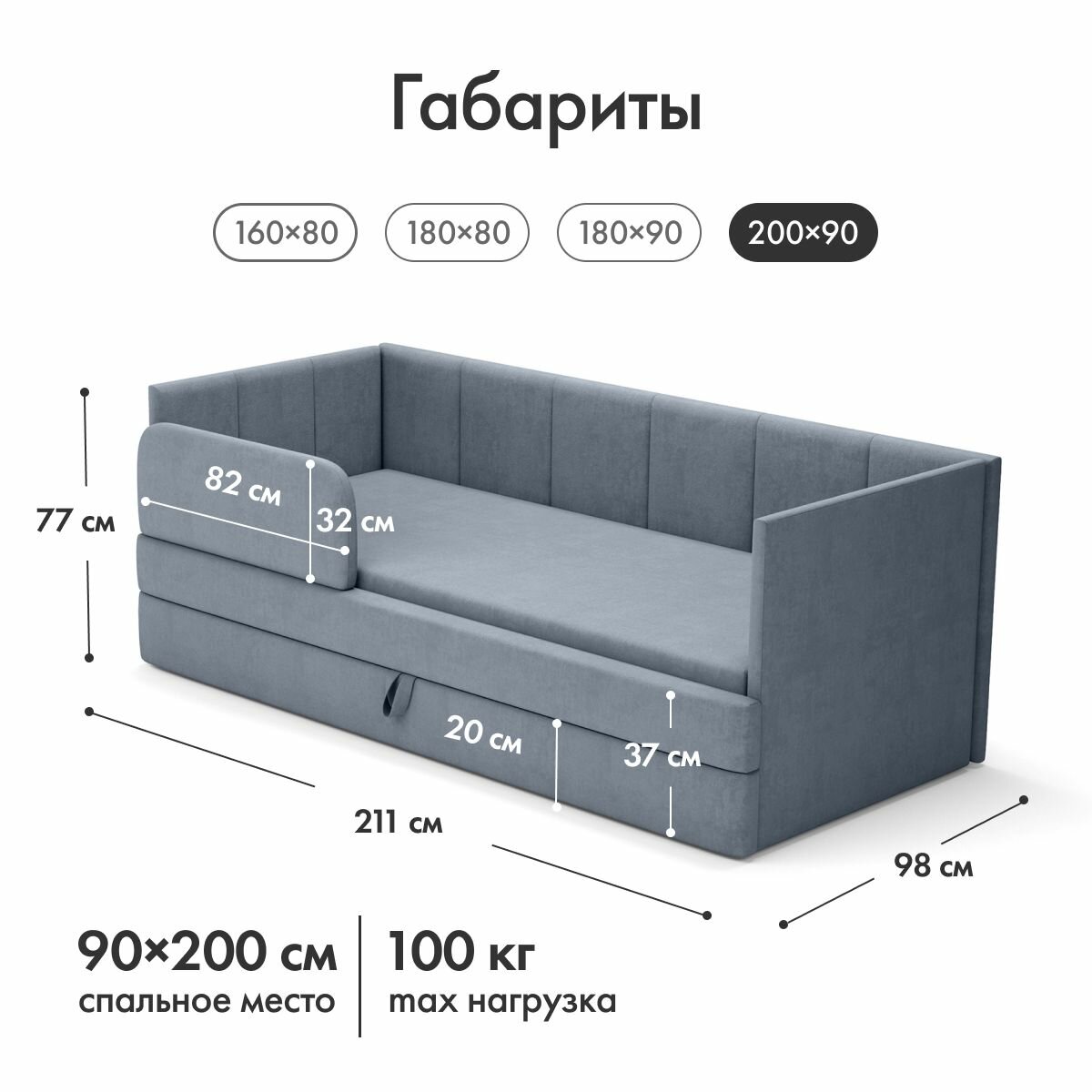 Отзывы на Детский диван кровать Челси 90х200 см графитовый с матрасом, чехлом, выкатным ящиком и бортиком Кровать детская от 3х лет