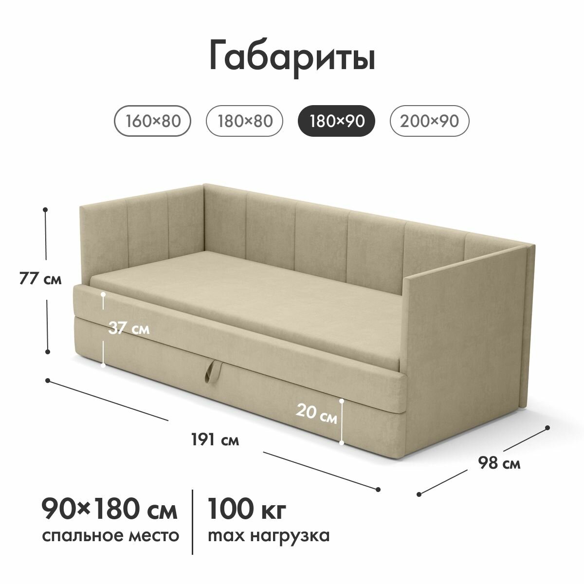 10 цен на Детский диван кровать Челси 180х90 см бежевый с матрасом, чехлом и выкатным ящиком Кровать детская от 3х лет