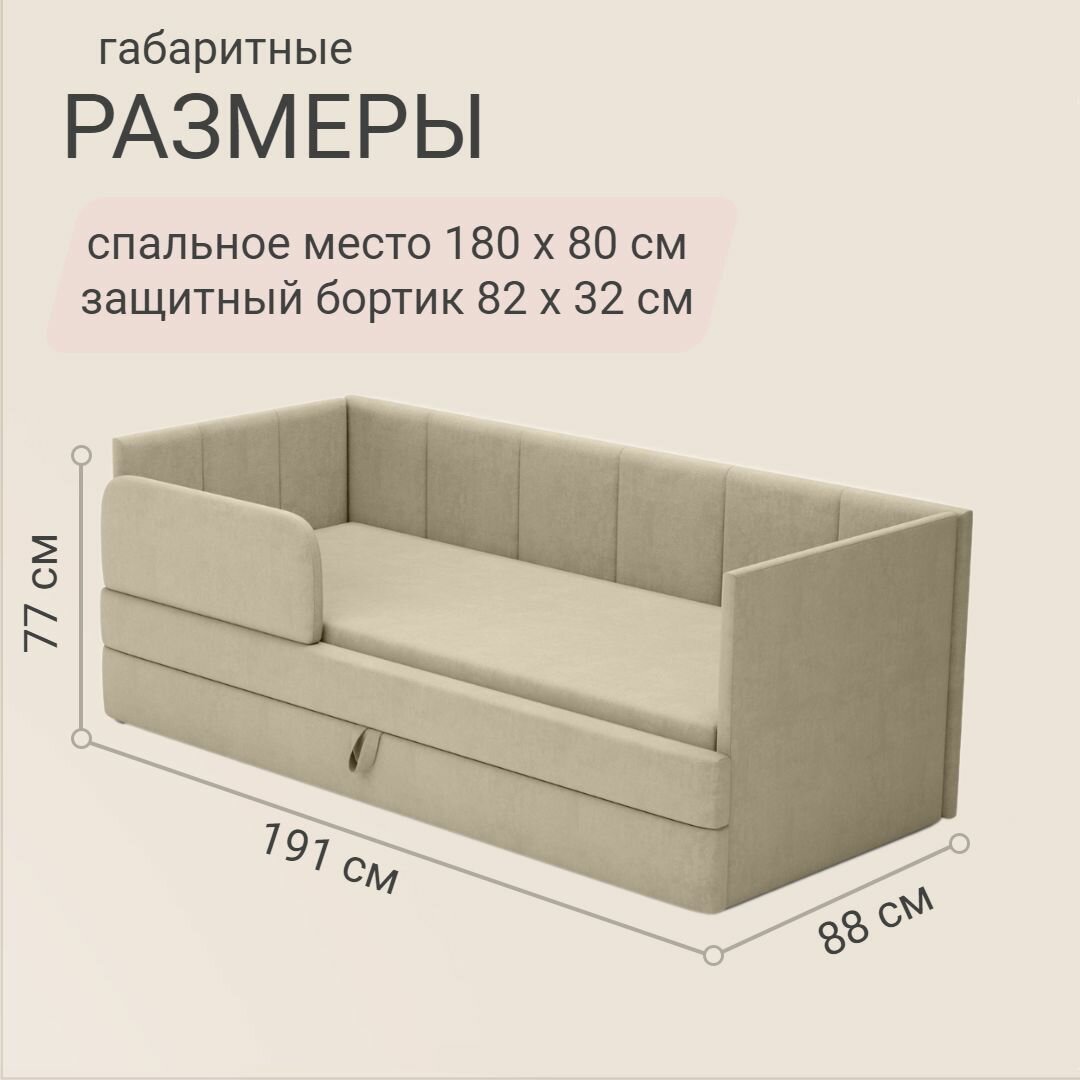 Детский диван кровать Челси 180х80 см бежевый с матрасом, чехлом, выкатным ящиком и бортиком Кровать детская от 3х лет информация: